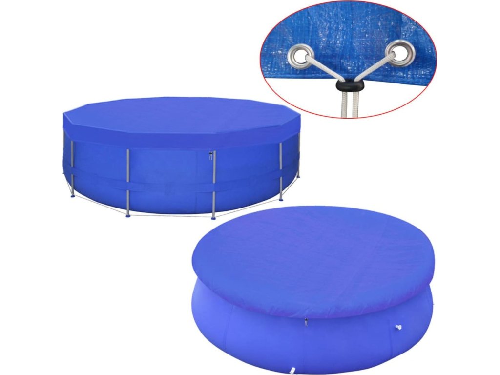 Kryt na bazén je vyrobený z vysoce kvalitního polyetylenu, váží 90 g/m² a je odolný vůči roztržení a vodoodpudivý. Malé vypouštěcí otvory ve středu krytu bazénu umožňují, aby voda procházela namísto hromadění nahoře. Malé odtokové otvory také vytvářejí ventilaci. Kvalitní prošití na okraji krytu zajišťuje dlouholeté služby!