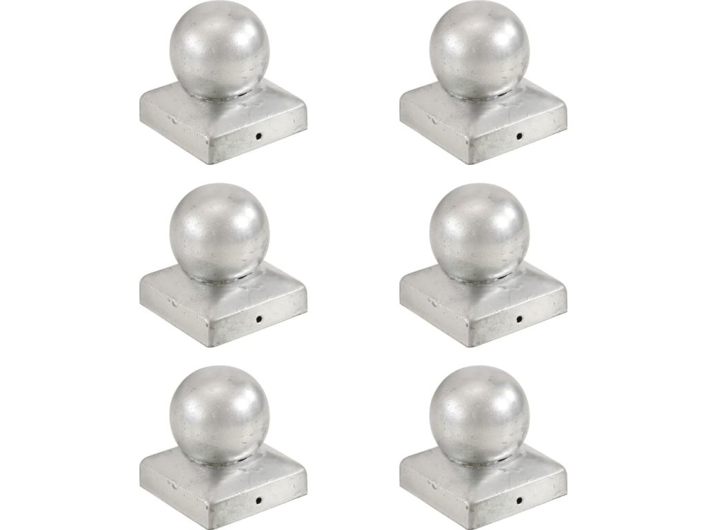 Krytky na plotové sloupky 6 ks s koulí pozinkovaný kov 71x71 mm [145497]