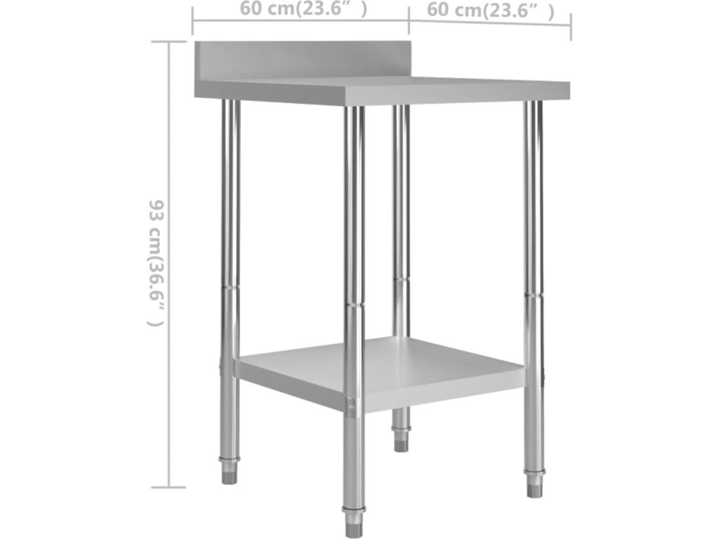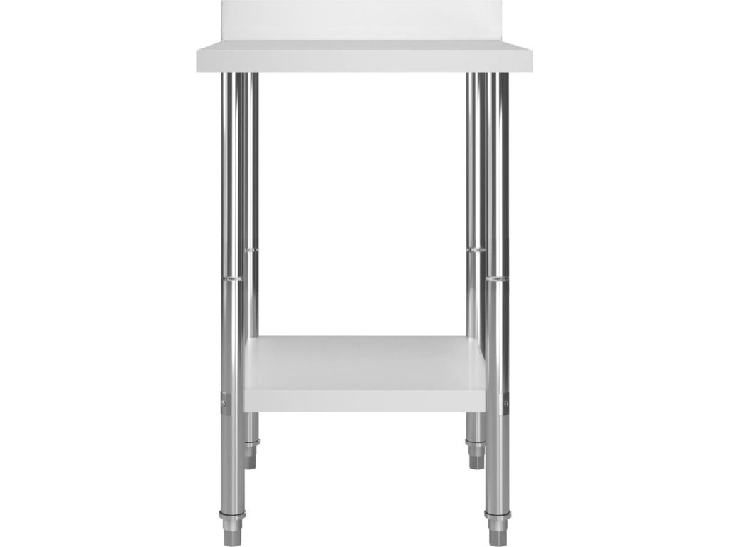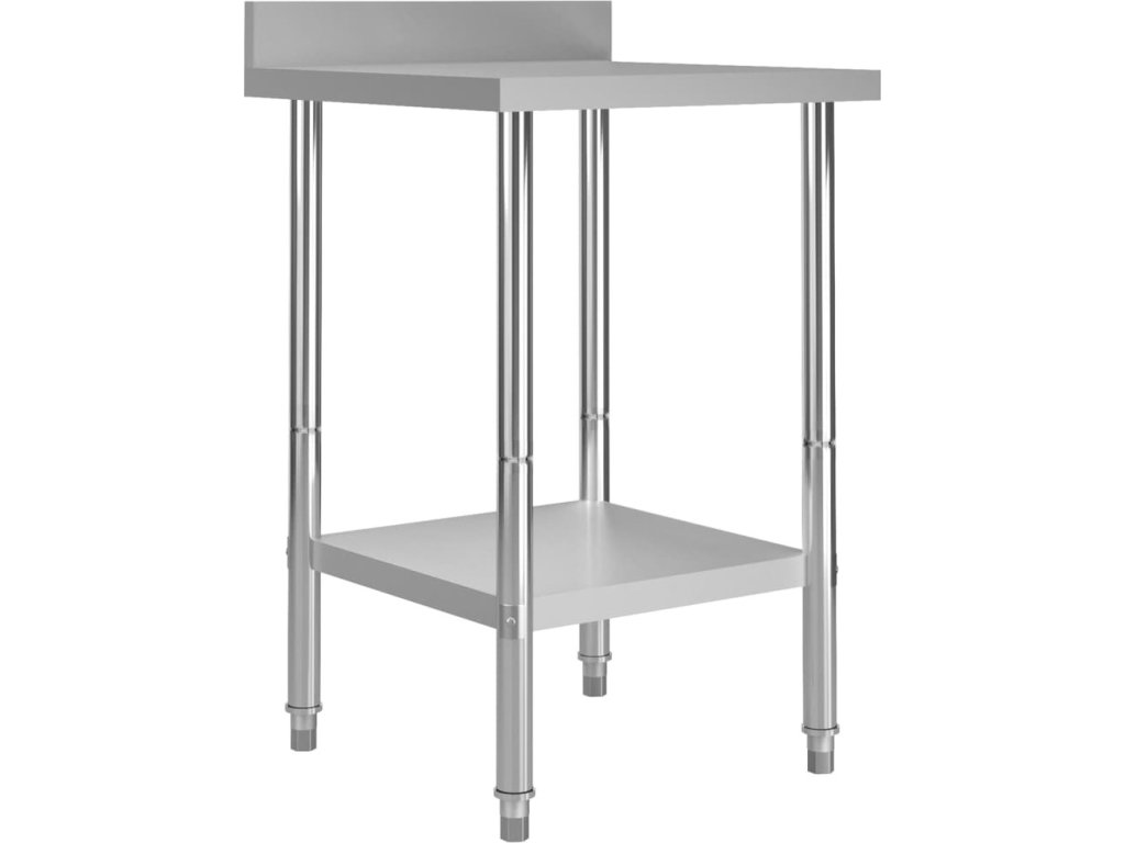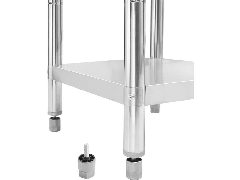 Stůl je vyrobený z nerezové oceli vysoké kvality, a tak vydrží i každodenní náročné používání. Snadno se také čistí. Navíc je vybavený praktickou zadní obrubou, která zpříjemňuje jeho použití. Ve spodní části se nachází police, kde si můžete zorganizovat váš úložný prostor. Nohy s funkcí vyrovnávání mají neklouzavý design, který zaručuje skvělou stabilitu a zároveň chrání podlahu.