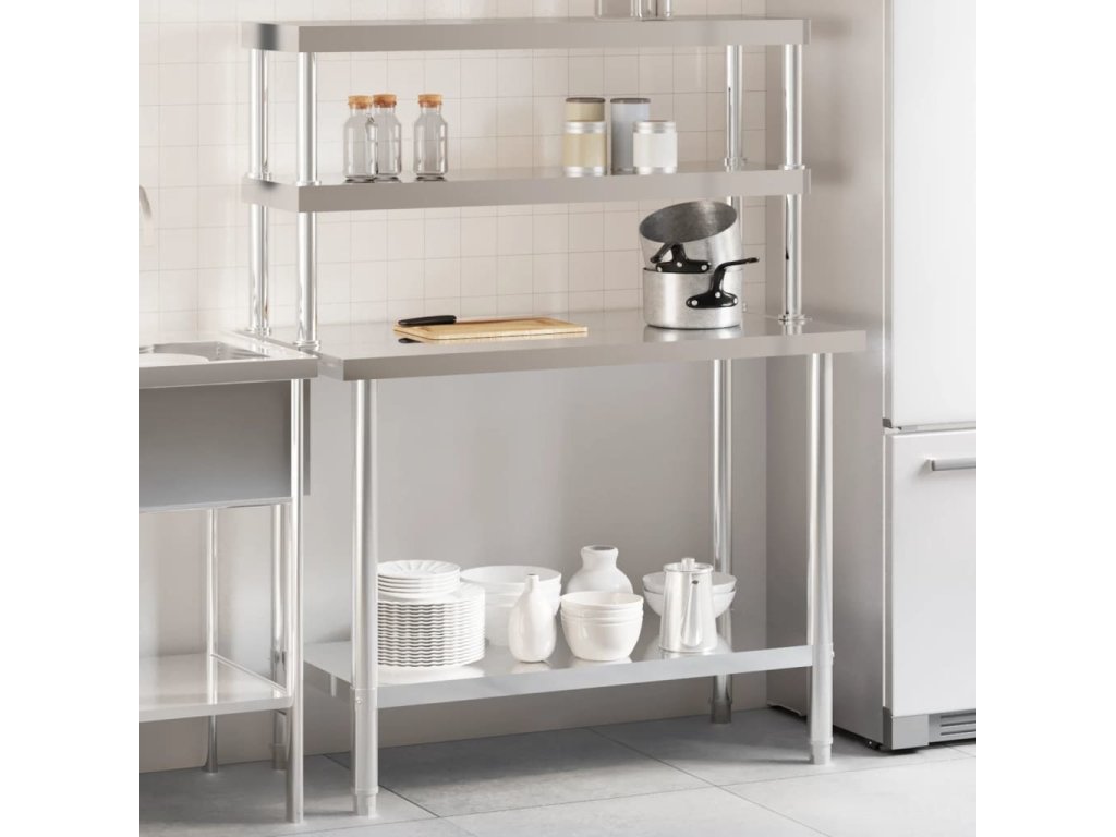 Kuchyňský pracovní stůl s horní policí 110 x 55 x 150 cm nerez [3208903]