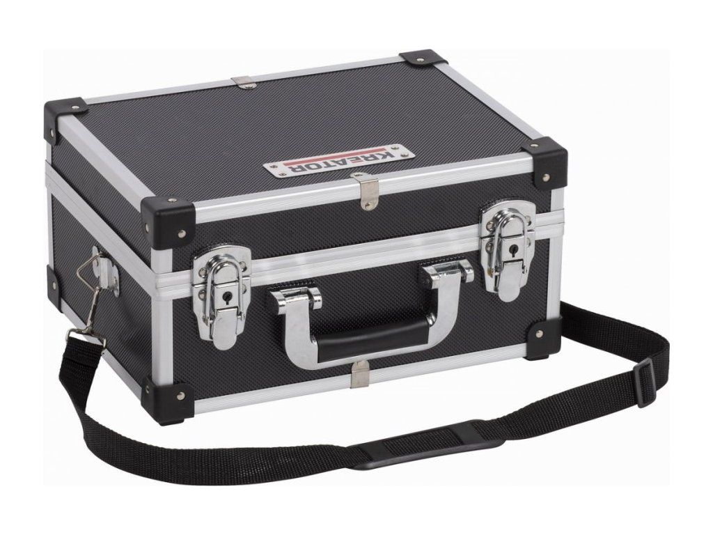 Černo-stříbrný hliníkový kufr KRT640106B značky Kreator má rozměry