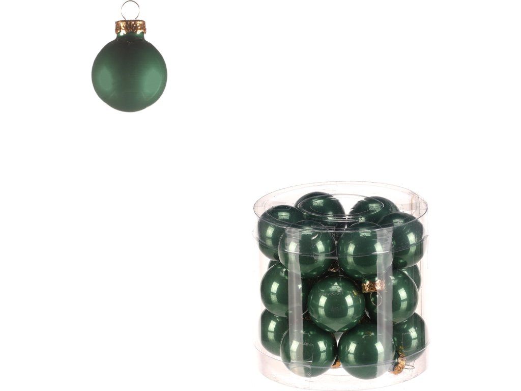 Kulaté skleněné ozdoby, o průměrech 3 cm a v zelených barvách, dodají vašemu vánočnímu stromečku nádherné odstíny, které vykouzlí tu pravou sváteční atmosféru. Jejich lesklý povrch krásně odráží světlo a vytváří kouzelný efekt. Balení obsahuje 18 kusů uložených v plastovém boxu, takže se snadno skladují a zůstávají chráněné pro další sezóny.