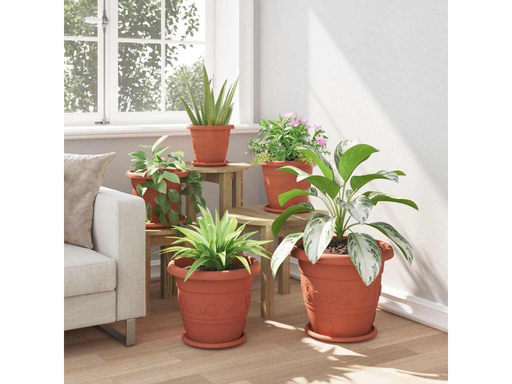Kulatý květináč 24 pcs Cihlově červená Ø 26 x 21.5 cm Plast [42020292]