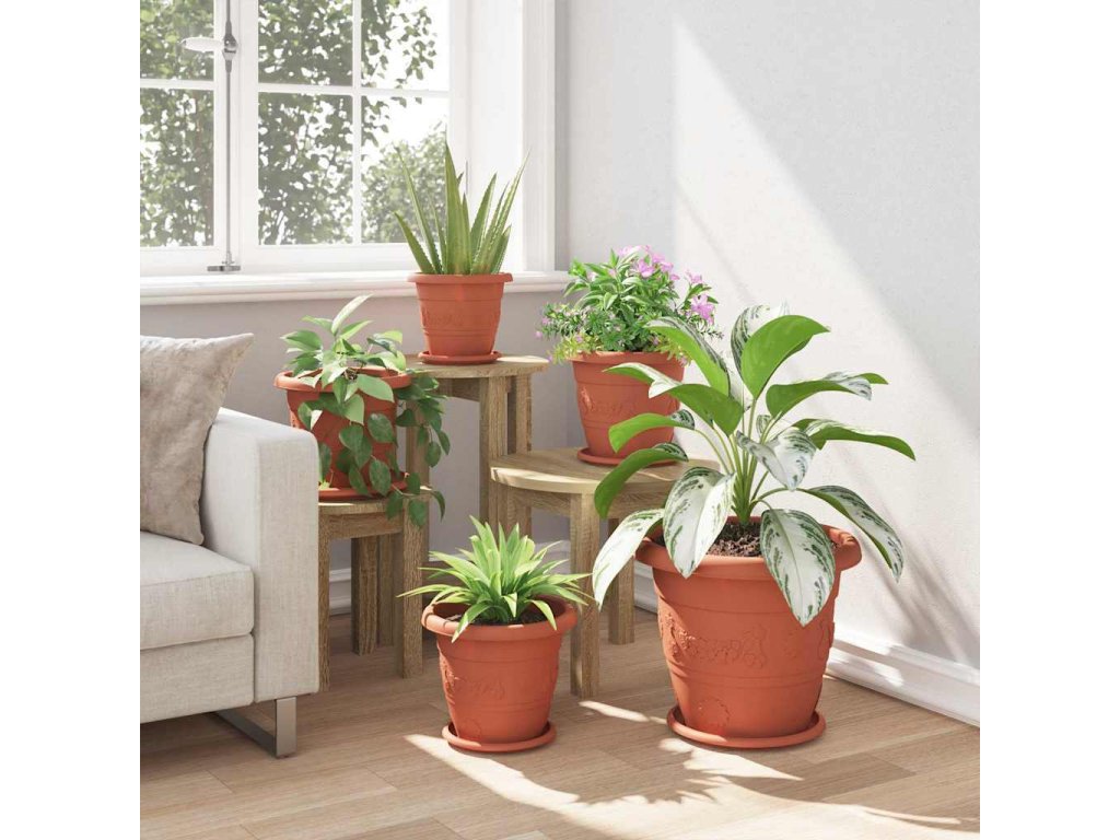 Kulatý květináč 6 pcs Cihlově červená Ø 26 x 21.5 cm Plast [42020280]