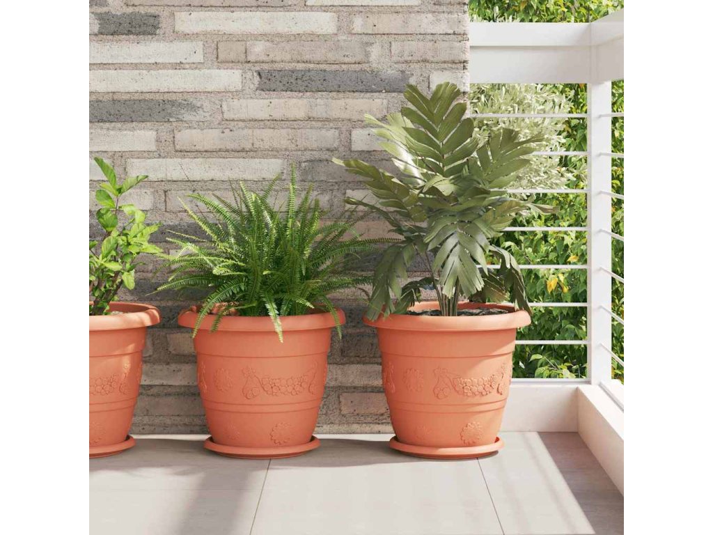 Kulatý květináč 6 pcs Cihlově červená Ø 26 x 21.5 cm Plast [42020282]