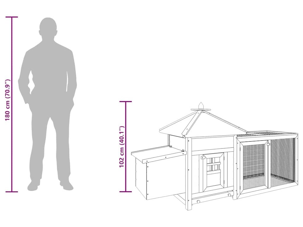 Vysoce kvalitní kurník bude poskytovat přístřeší pro slepice, husy, kachny a mnoho dalších zvířat. Má kvalitní a komplexní design s jedním domem, hnízdištěm a velkým během s železným pletivem, které vám umožní mít přehled o vaší drůbeži.