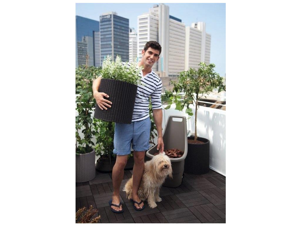 Květináč Cylinder L grafitový značky Keter připomíná svým designem přírodní ratanovou vazbu. Skvěle tak doplní jak moderní, tak i tradiční look okolí. Květiny v něm přirozeně vyniknou.