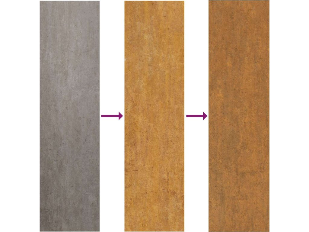 - Tento produkt ještě není zrezivělý, a když jej obdržíte, má normální kovovou barvu, která časem zreziví. Proces rezivění můžete urychlit postříkáním mýdlovou vodou a slanou vodou. Aby vaše oblečení zůstalo beze skvrn, vyhněte se kontaktu se vznikající vrstvou rzi.