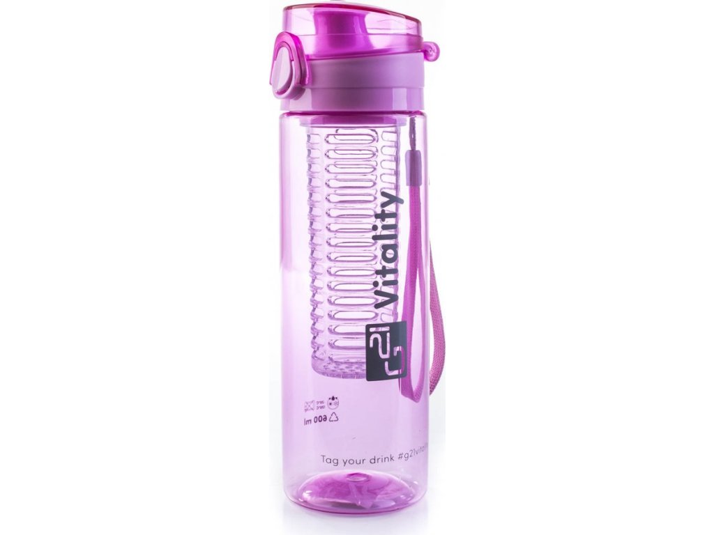 Láhev G21 na smoothie/juice ve fialové barvě je vyrobena z odolného a nezávadného tritanu. Má objem 600 ml a je to praktický parťák nejen na doma, ale i do přírody nebo na sport. Navíc obsahuje plastové vkládací sítko na louhování bylinek, kousků ovoce nebo čajů.