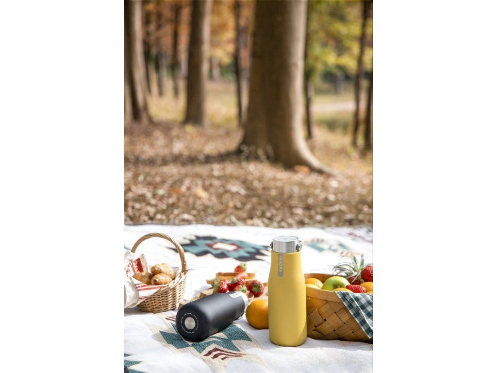 Světlo UV-C LED se automaticky aktivuje každé 2 hodiny, aby zůstala láhev čistá a voda čerstvá. Baterie vydrží až 1 měsíc a můžete ji snadno nabíjet pomocí kabelu magnetického USB. Bezpečná pitná voda kdykoli a kdekoli, bez nákladů na balenou vodu a spotřebu jednorázových plastových láhví. Dvojitá vakuová izolace uchová vaše studené i teplé nápoje dlouhé hodiny. Láhev je vyrobená z potravinářské nerezové oceli třídy 18/8 – zaručená odolnost a bezpečnost. Všechny součástky jsou vhodné do myčky nádobí (max. 50 stupňů Celsia), s výjimkou uzávěru.