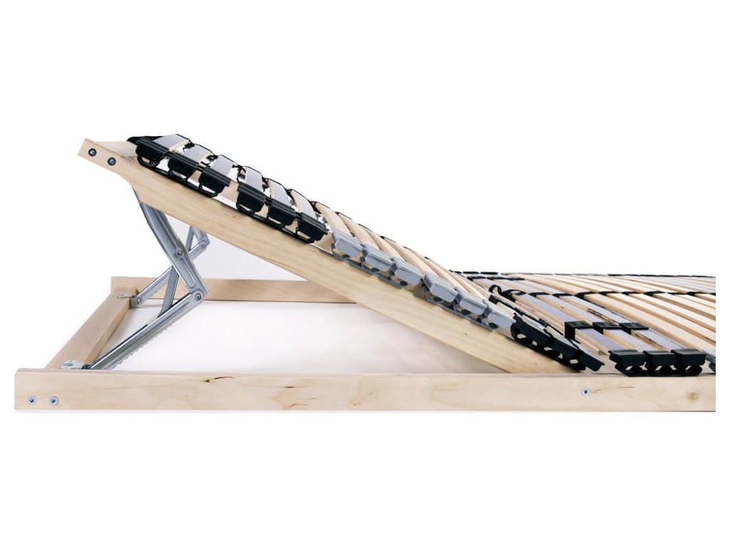 Rošt postele s rámem z masivního bukového dřeva a břízovými lamelami je robustní a odolný. Sedm komfortních zón poskytuje tělu optimální podporu. Oba konce lamel jsou drží na místě gumové uzávěry SBS pro lepší stabilitu celé konstrukce. S pomocí 6 nastavitelných dvojitých lamel ve středové zóně si můžete pevnost roštu uzpůsobit svým potřebám. Pro vaše pohodlí je oblast pod hlavou nastavitelná. Montáž je snadná.