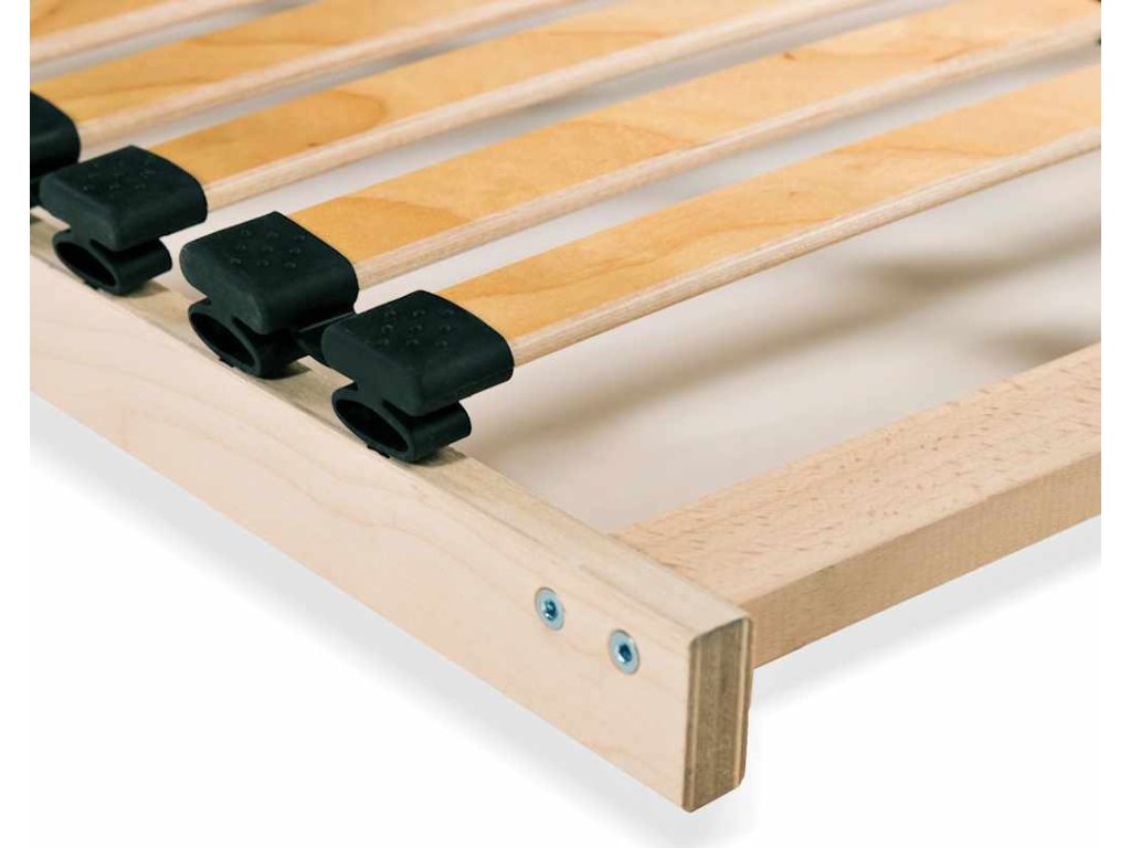 Rošt postele s rámem z masivního bukového dřeva a břízovými lamelami je robustní a odolný. Sedm komfortních zón poskytuje optimální podporu pro vaše tělo. Oba konce lamel jsou drženy na místě gumovými uzávěry SBS pro lepší stabilitu celé konstrukce. S pomocí 4 nastavitelných dvojitých lamel ve středové zóně si můžete uzpůsobit pevnost roštu svým potřebám. Montáž je snadná.