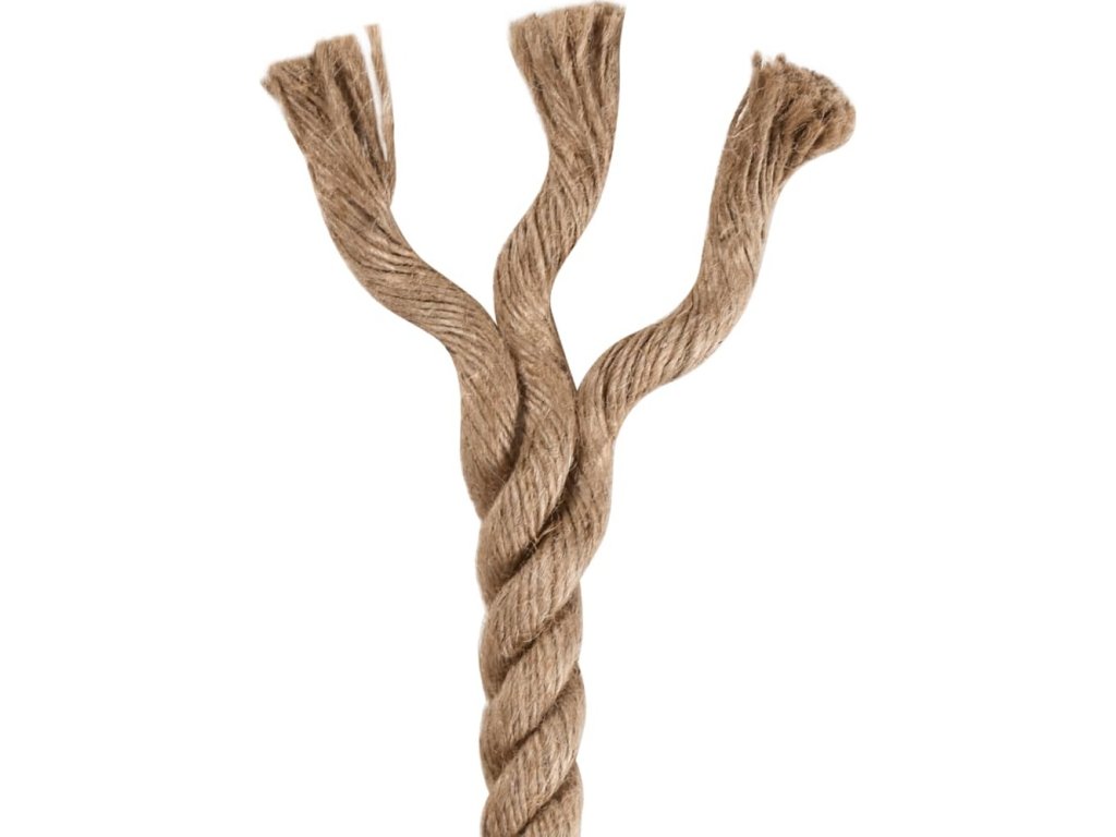 Toto lano je vyrobeno ze 100% přírodní juty. Je odolné vůči potrhání a otěru a hodně toho vydrží. Jutové lano dobře vypadá a je příjemné na dotek.