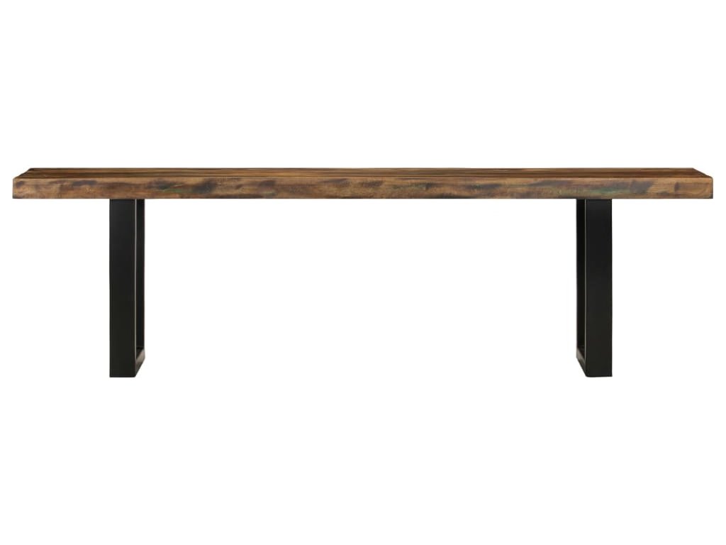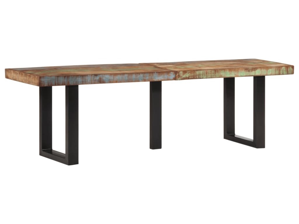 - Masivní recyklované dřevo: Lavice je vyrobena z masivního recyklovaného dřeva. Masivní recyklované dřevo se skládá z opakovaně použitých dřevin, jako je teak, mangovník, borovice a buk. Toto dřevo pochází ze starých staveb, jako jsou továrny, kůlny a lodě. Jelikož je každý kus ručně vyrobený, odstíny se mohou u každého z nich lišit.