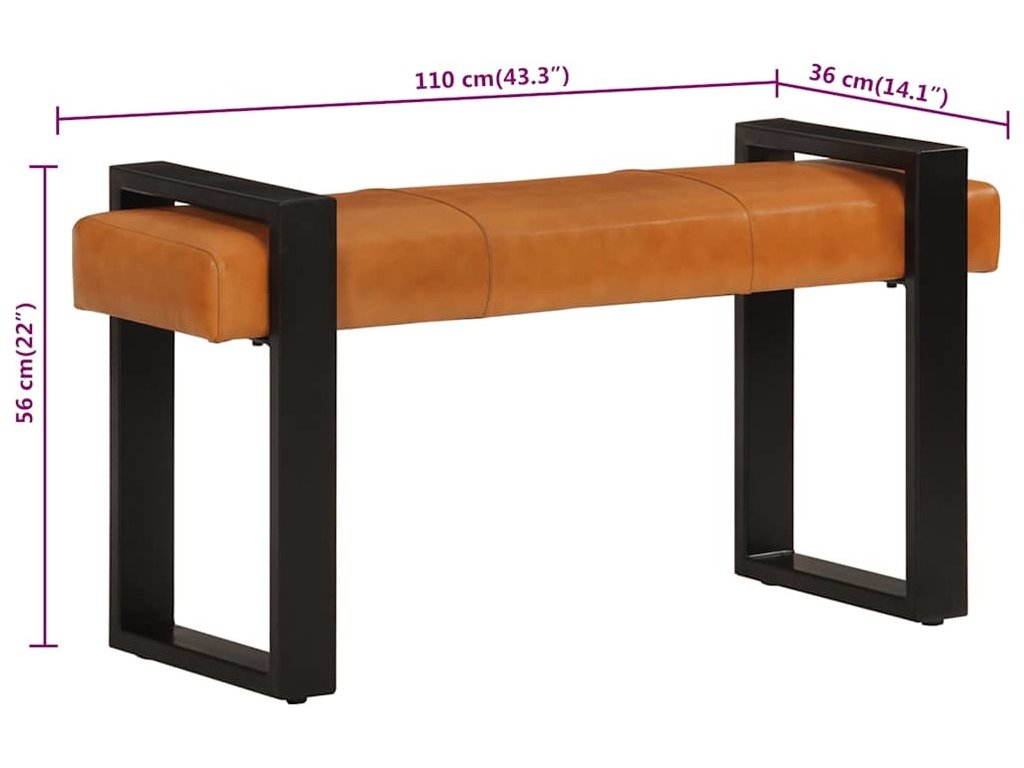 Lavice černá a hnědá 110 cm pravá kozí kůže [342210]