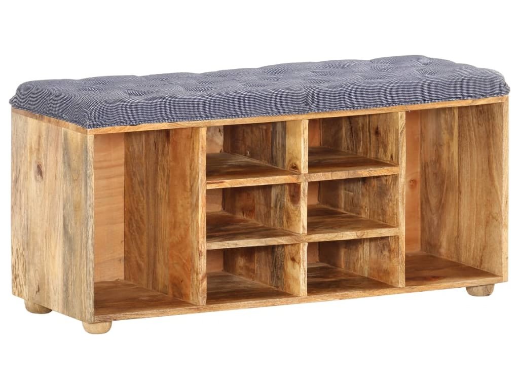 Lavice do předsíně je vyrobená z masivního mangovníkového dřeva a textilu, takže má dlouhou životnost a je stabilní. Polstrovaná horní část zaručuje pohodlné místo k sezení. Tato lavička ke vchodu je navíc navržená s 8 přihrádkami, do kterých si můžete uspořádat menší předměty na dosah ruky.