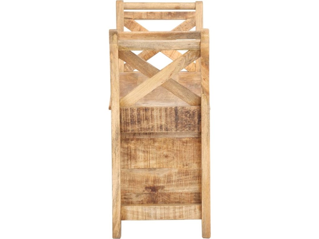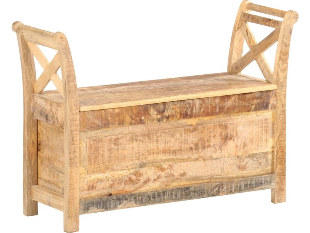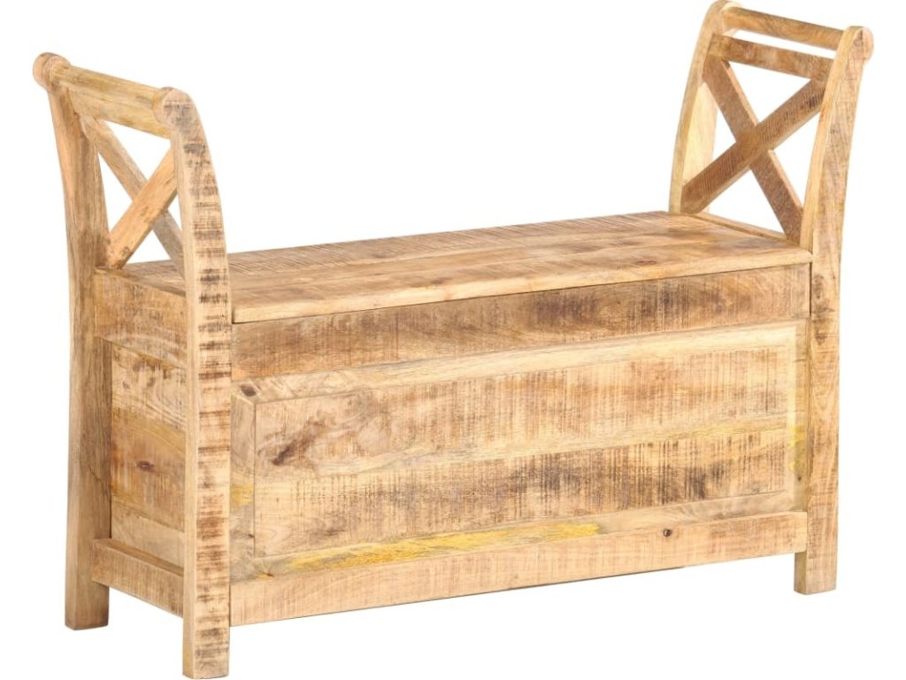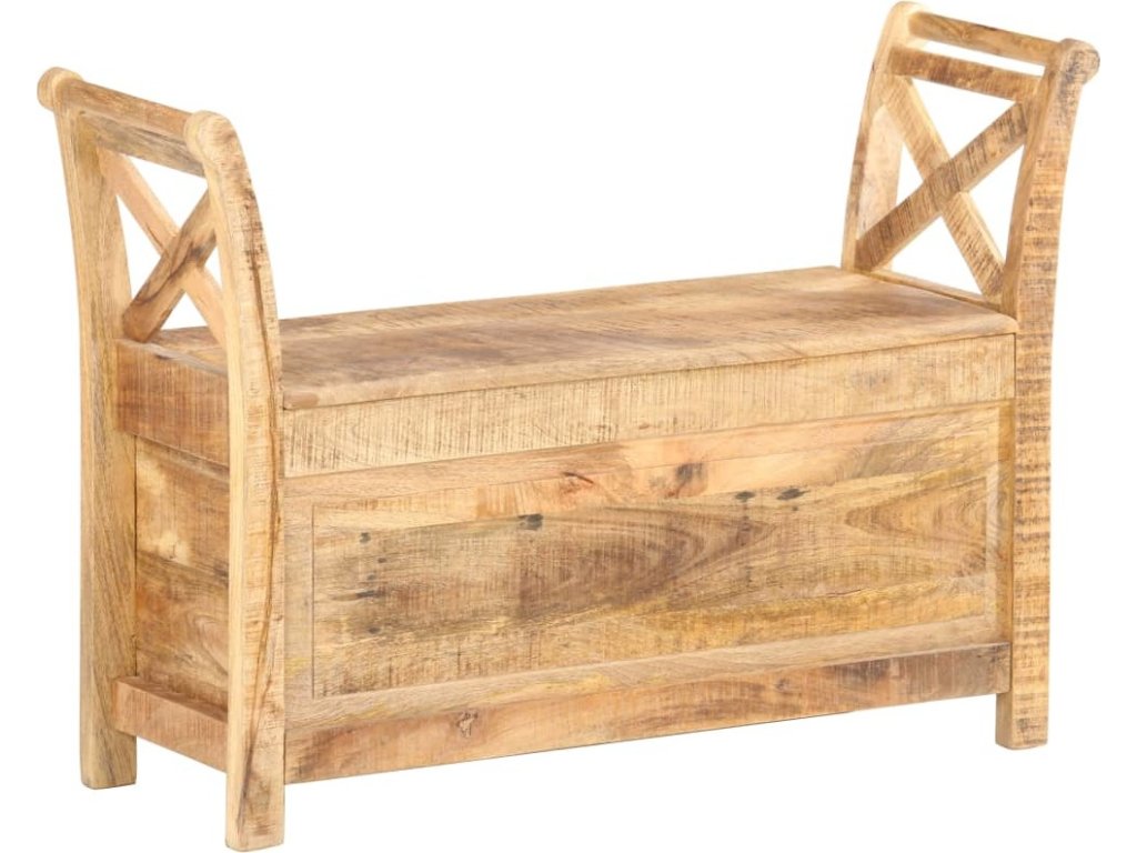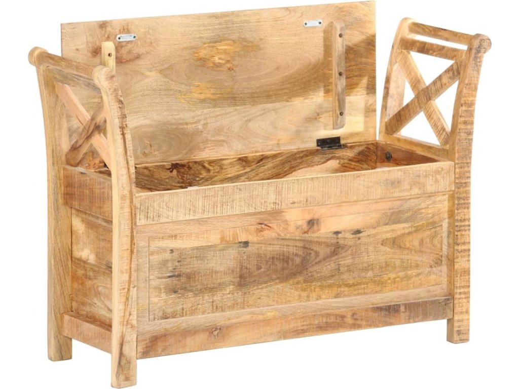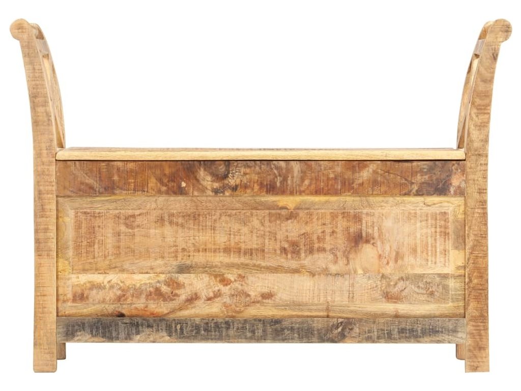 Lavice je vyrobená z masivního mangovníku, což je tvrdé dřevo s hustou texturou. Hrubé mangovníkové dřevo je nejen schopné unést značnou váhu, ale zároveň také výborně odolává opotřebení a působení času. Lavička s překrásným designem je proto velice stabilní, trvanlivá a poutavá na pohled. Lavice má dvě prohnuté područky, které jsou praktické a zároveň elegantní. Uvnitř lavice je úložný prostor, kam si můžete organizovaně ukládat polštáře, hračky, podušky a další nezbytnosti, které chcete mít po ruce. Řemeslné zpracování a elegantní kresba dřeva dává každému kusu nábytku jedinečný a od ostatních lehce odlišný charakter. Sestavení lavice do předsíně je snadné.