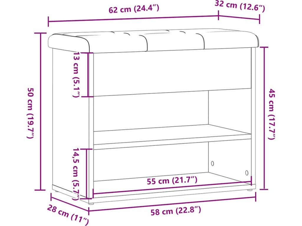 - Pohodlné sezení: Silně polstrovaná poduška na sedáku vám poskytne optimální pohodlí při nazouvání a zouvání bot.