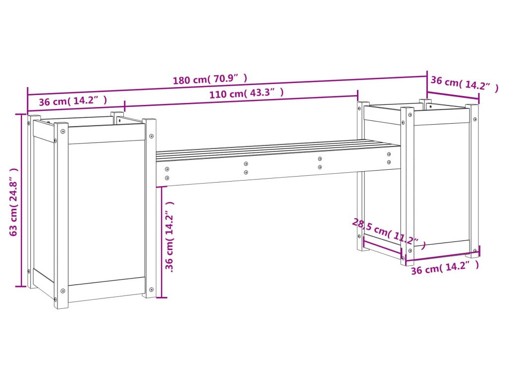 Lavice s truhlíky 180 x 36 x 63 cm masivní borové dřevo [825167]