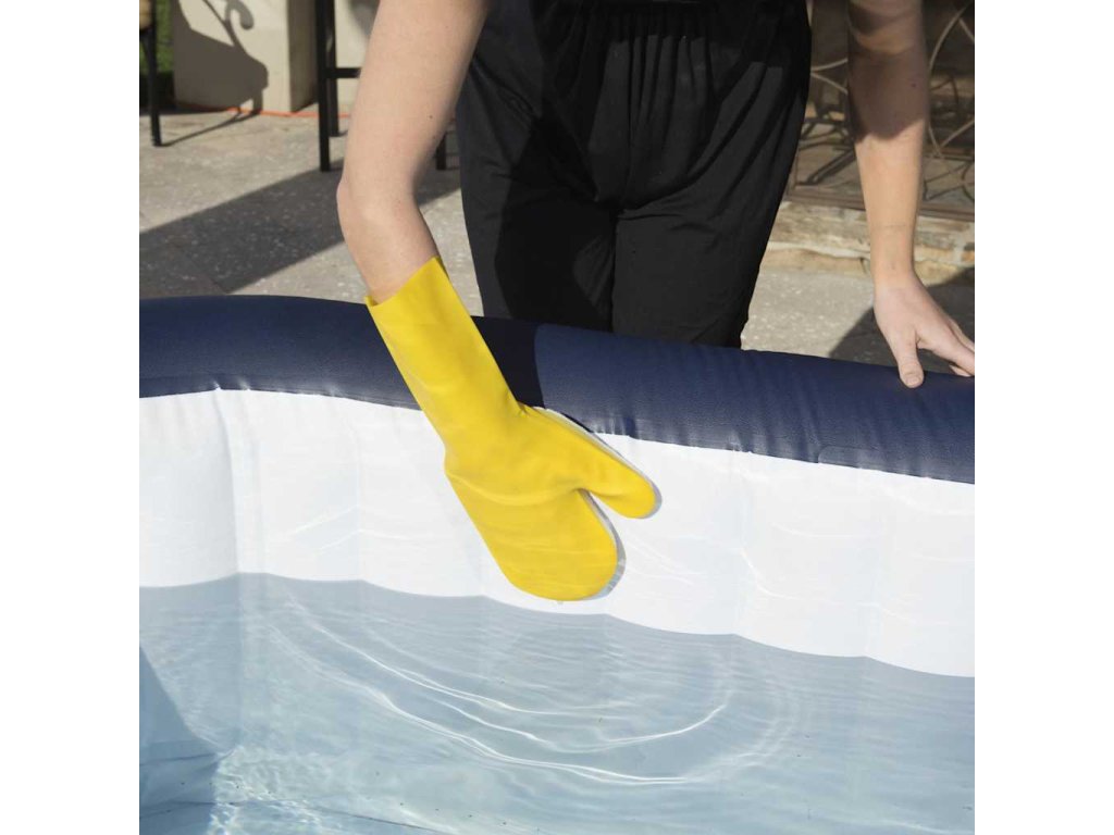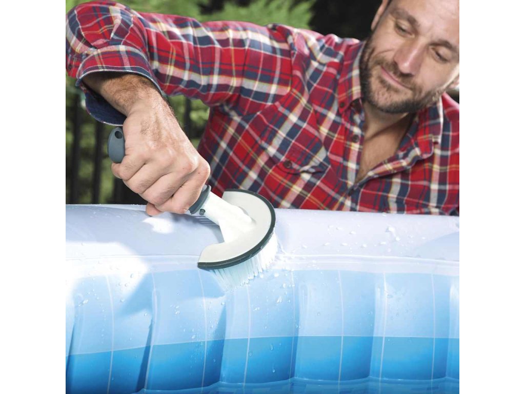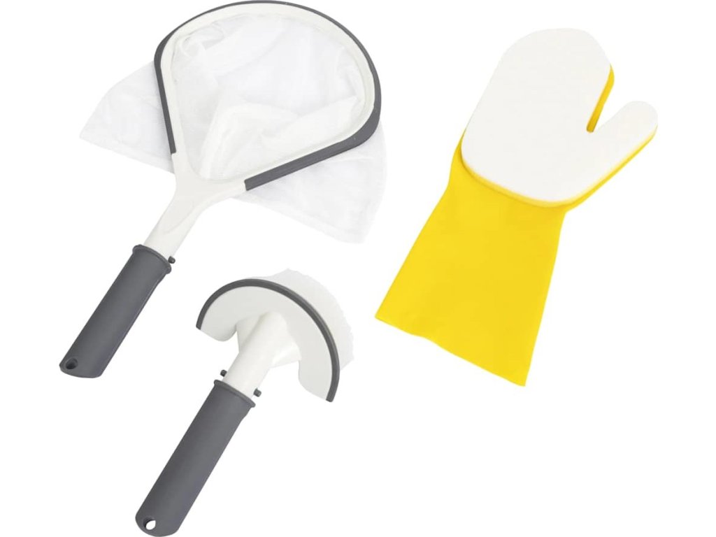Podběrák má měkký okraj, který chrání povrch vířivky, a design kruhového tvaru, který zapadá do křivek vnitřku vířivky. Hluboká síťka je perfektní ke sběru nečistot a lze ji držet přímo v ruce nebo ji připojit ke standardní teleskopické tyči, potřebujete-li delší dosah. Kartáč je také vybavený měkkým okrajem a má nylonové štětiny, aby při čištění vířivky nedocházelo k poškrábání povrchu. Kartáč je také možné používat ručně nebo se standardní teleskopickou tyčí. Čisticí latexová rukavice je spojená s čisticí houbičkou, se kterou snáze vydrhnete vířivku na úrovni vodní hladiny, aniž by se chemikálie dostaly na vaši pokožku.