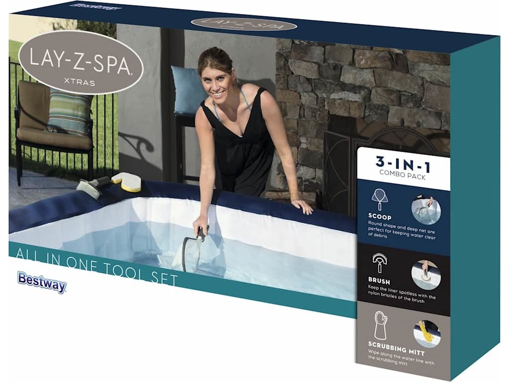 Sada nástrojů vše-v-jednom Bestway Lay-Z-Spa je perfektní čistící příslušenství, se který snadno udržíte svou vířivku zářivě čistou!