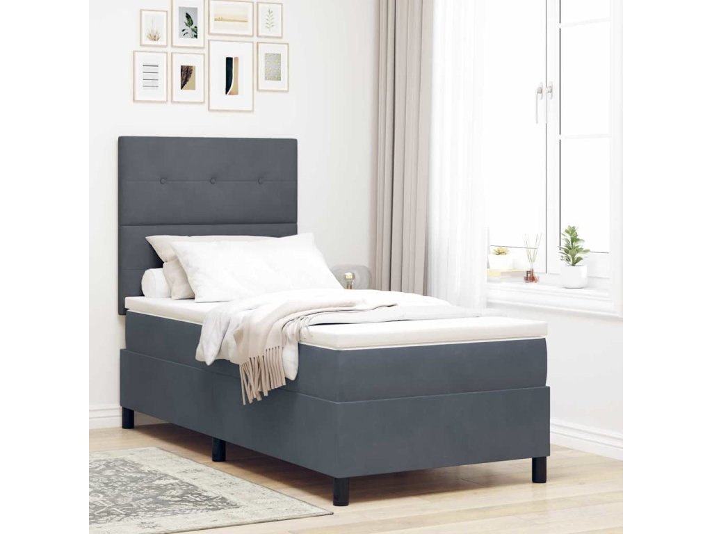 LED box pružinová postel s čelo Tmavě šedá 100 x 200 cm textil [3343293]