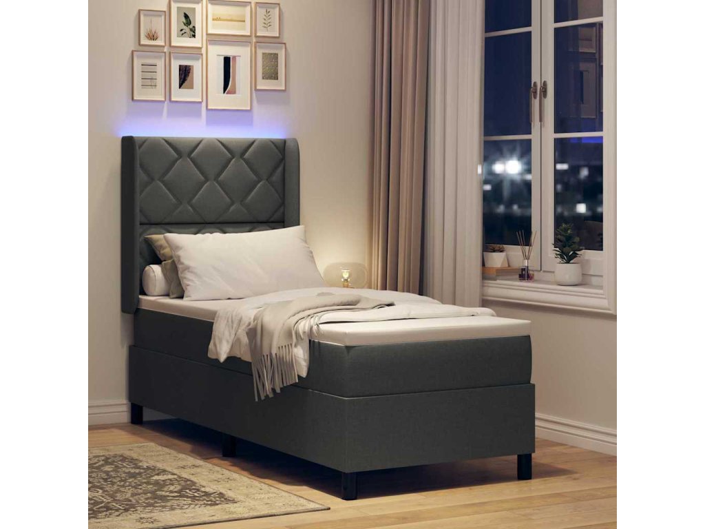 LED box pružinová postel s čelo Tmavě šedá 80 x 200 cm textil [3343533]