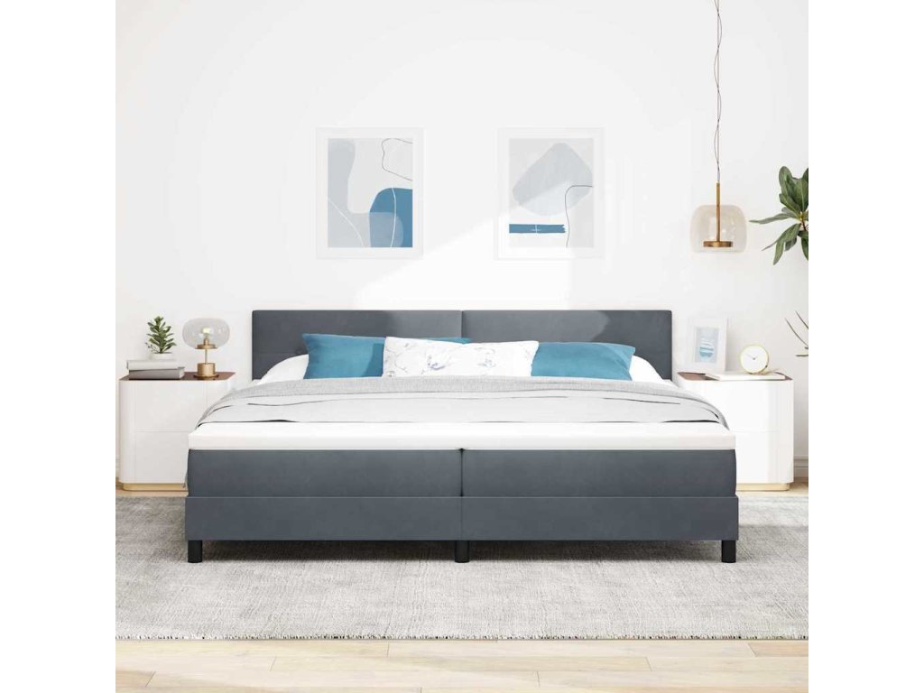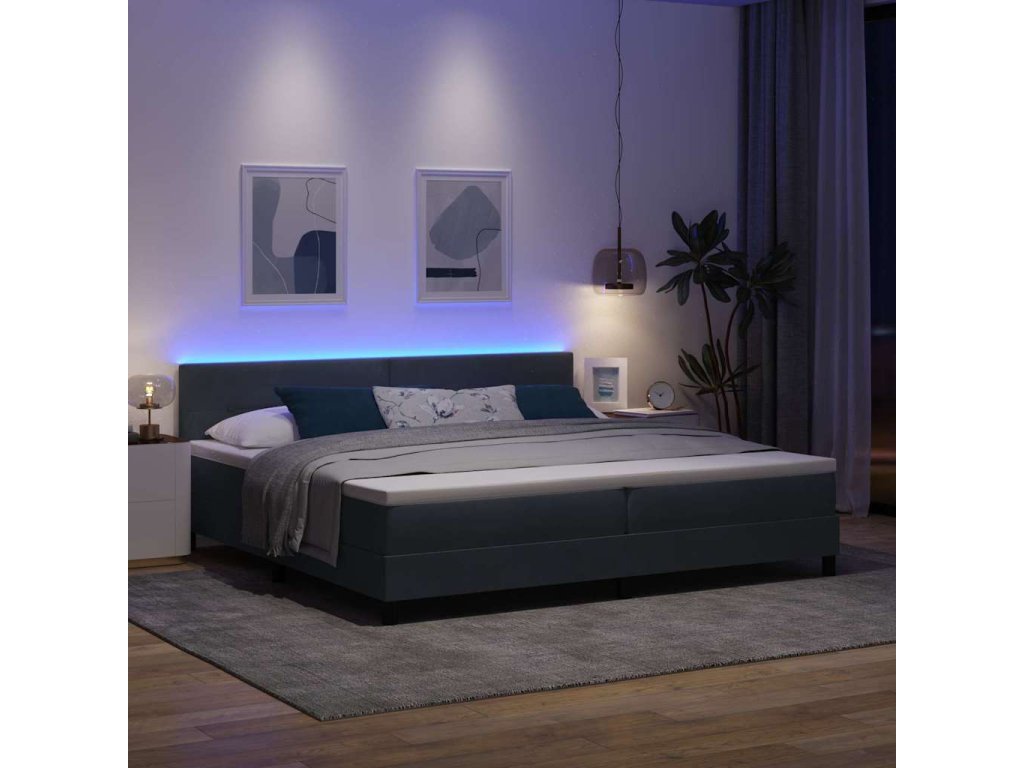 LED box pružinová postel s LED Tmavě šedá 200 x 200 cm samet [3342675]