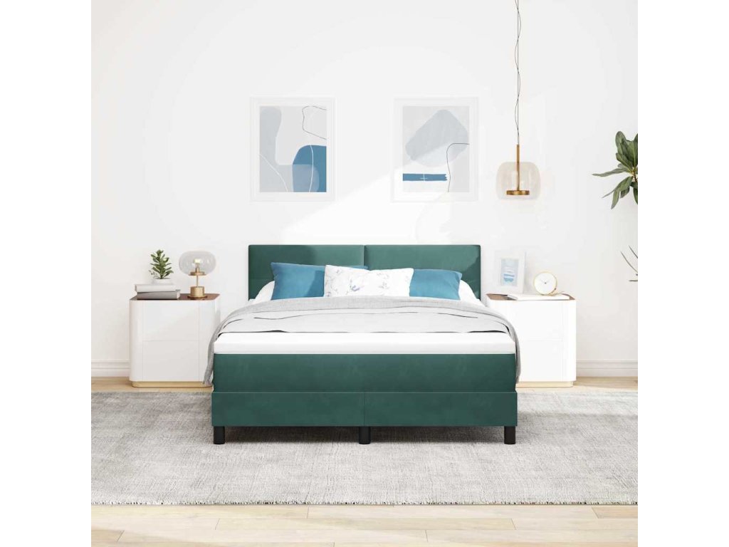 LED box pružinová postel s LED Tmavě zelená 160 x 200 cm samet [3342665]