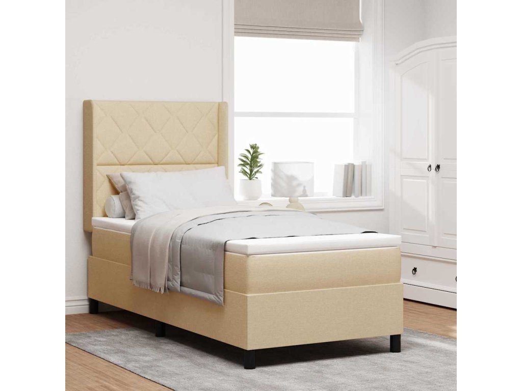 LED box pružinová postel s matrací Krémová 100 x 200 cm textil [3343558]
