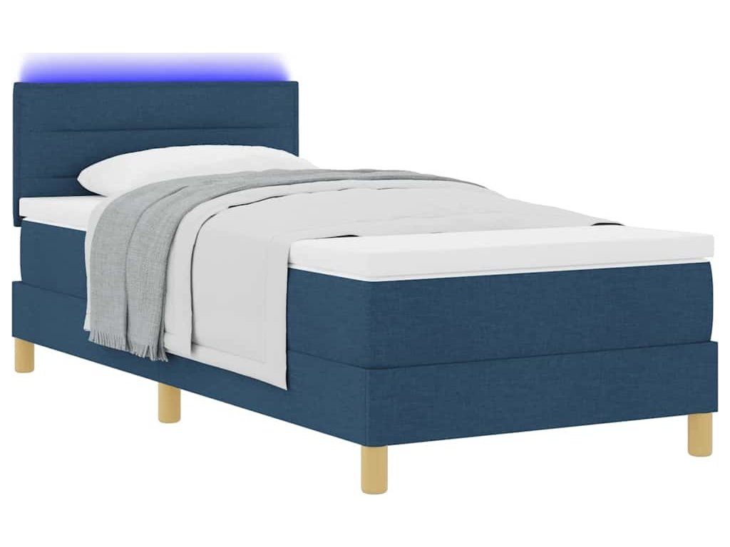 LED box pružinová postel s matrací Modrá 90 x 190 cm textil [3342330]