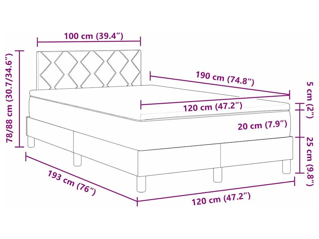| Kompatibilní velikost matrace: | Krátká malá dvojpostel (120 cm x 190 cm nebo 47" x 75") |