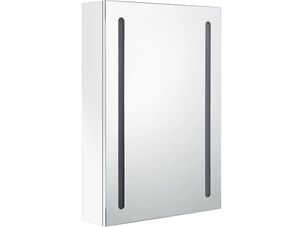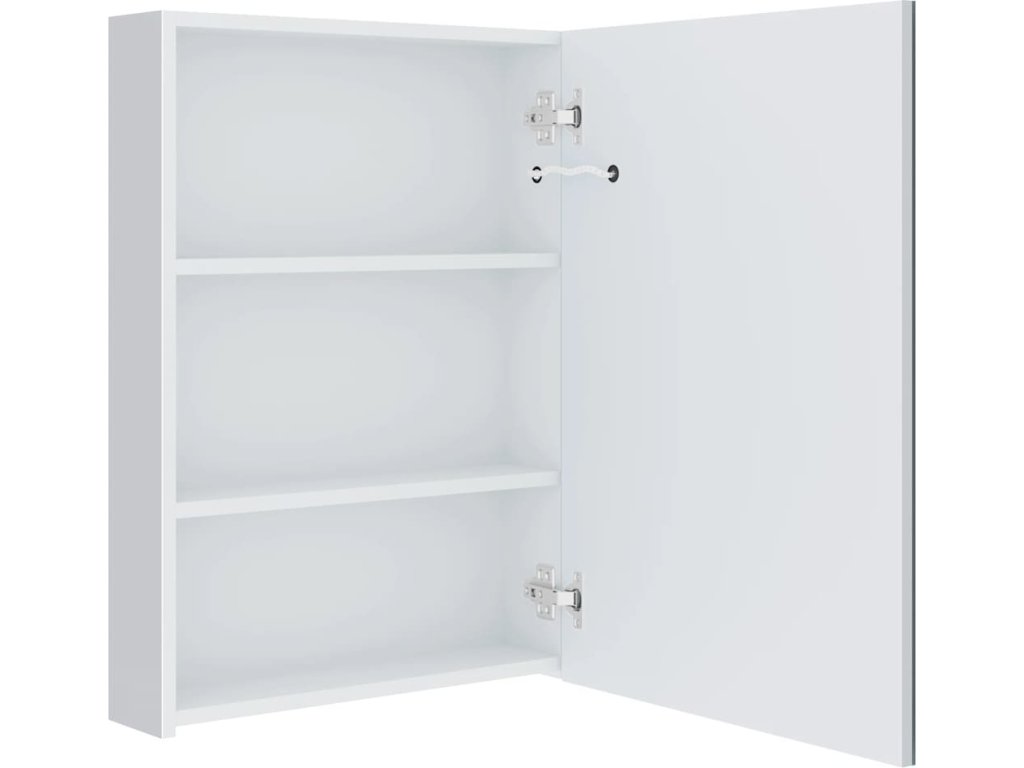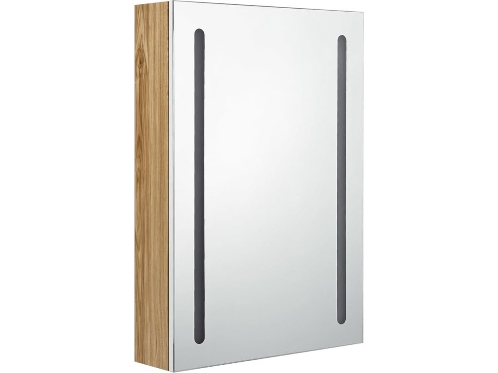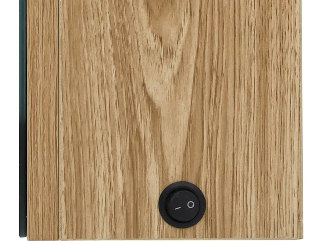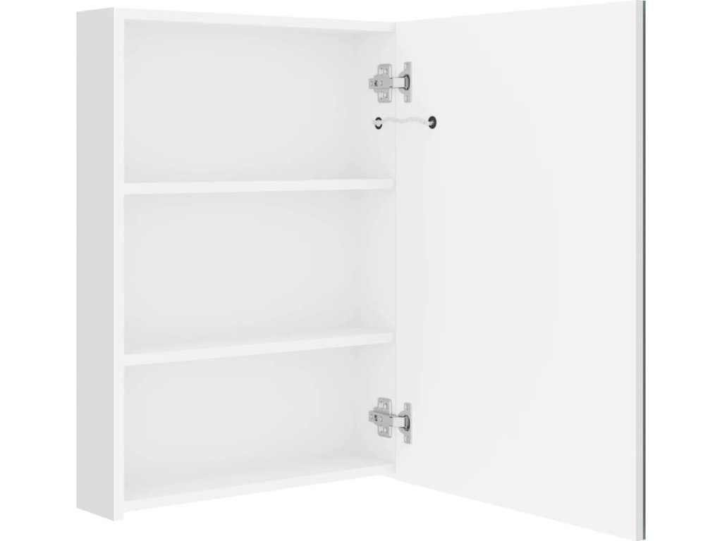 Je vyrobená z kvalitní MDF desky s melaminovou povrchovou úpravou, která zaručuje dlouholetou životnost. Energeticky úsporné LED pásky vám poskytnou optimální osvětlení pro líčení, holení či péči o pokožku. Dokonale rozzáří celou místnost, vaši tvář i váš úsměv. Uvnitř skříňky najdete 3 poličky s dodatečným úložným prostorem pro všechny vaše toaletní a kosmetické doplňky. Světlo můžete snadno zapnout či vypnout tlačítkem ve spodní části. Tato stylová a funkční skříňka ozvláštní vskutku jedinečným způsobem vybavení vaší koupelny!