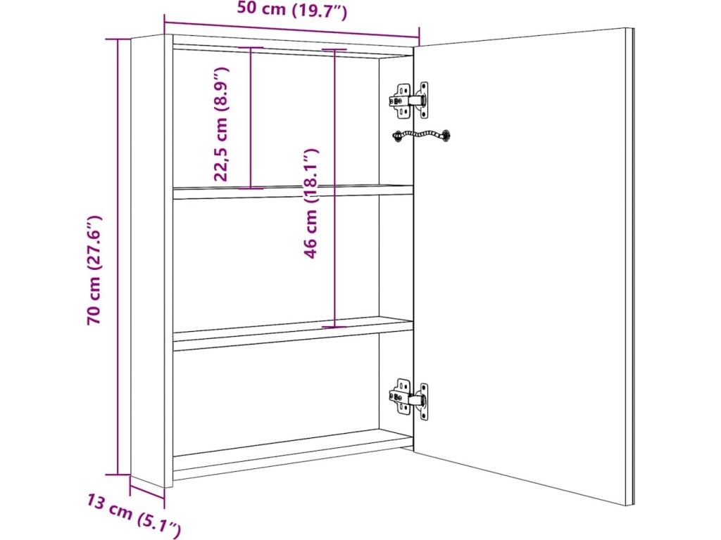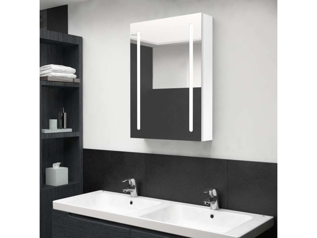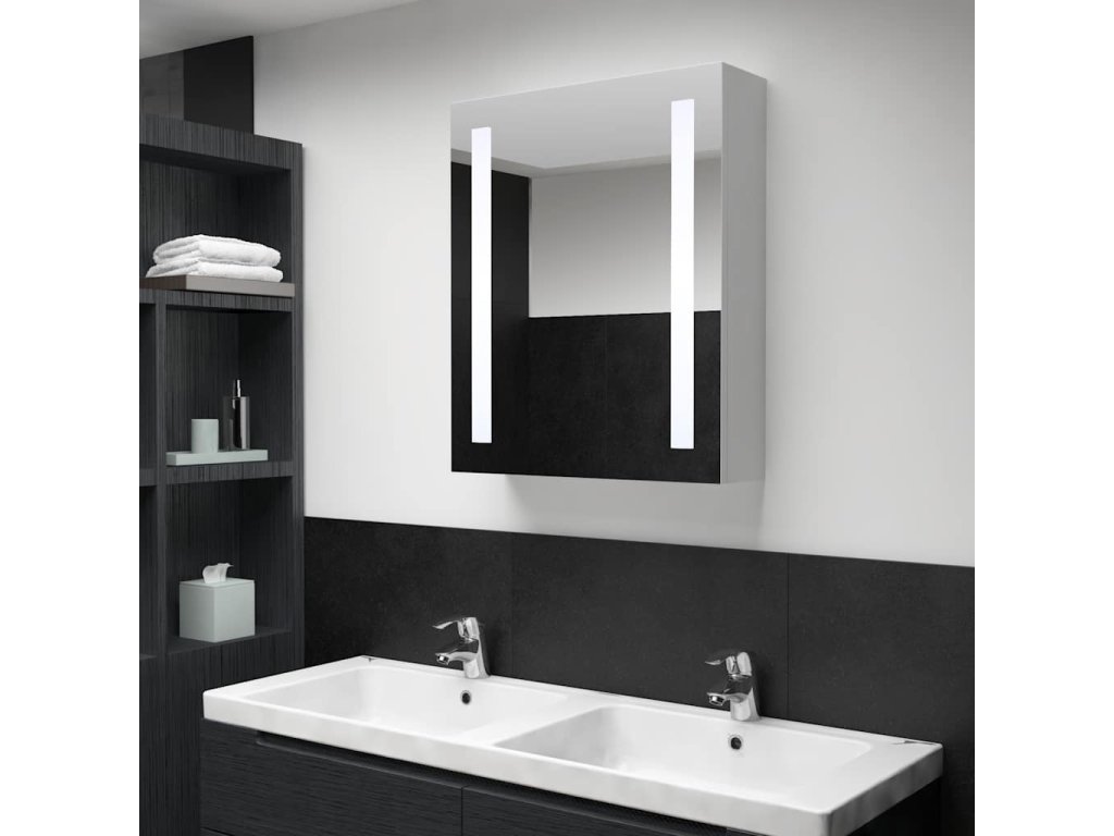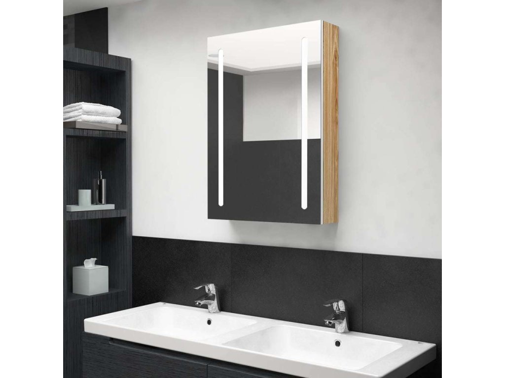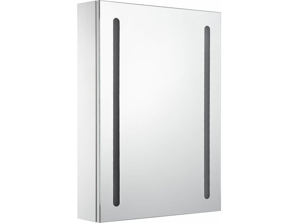 Je vyrobená z kvalitní MDF desky s melaminovou povrchovou úpravou, která zaručuje dlouholetou životnost. Energeticky úsporné LED pásky vám poskytnou optimální osvětlení pro líčení, holení či péči o pokožku. Dokonale rozzáří celou místnost, vaši tvář i váš úsměv. Uvnitř skříňky najdete 3 poličky s dodatečným úložným prostorem pro všechny vaše toaletní a kosmetické doplňky. Světlo můžete snadno zapnout či vypnout tlačítkem ve spodní části. Tato stylová a funkční skříňka ozvláštní vskutku jedinečným způsobem vybavení vaší koupelny!