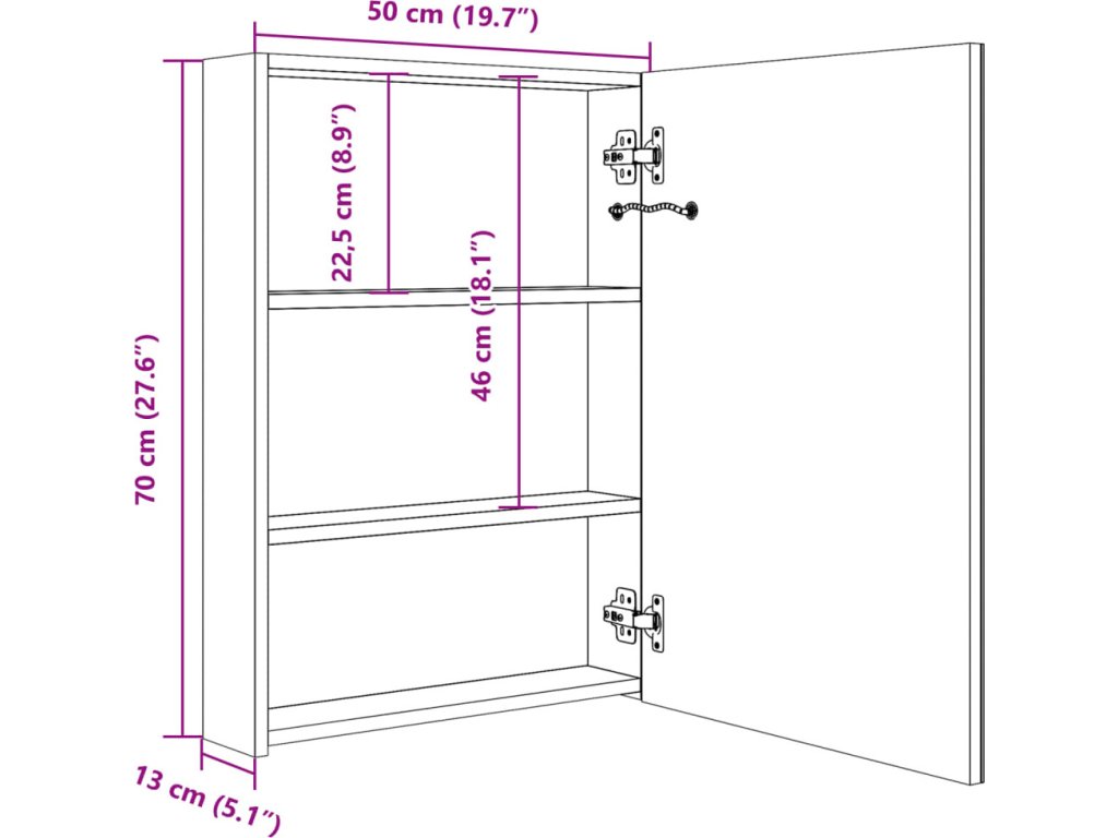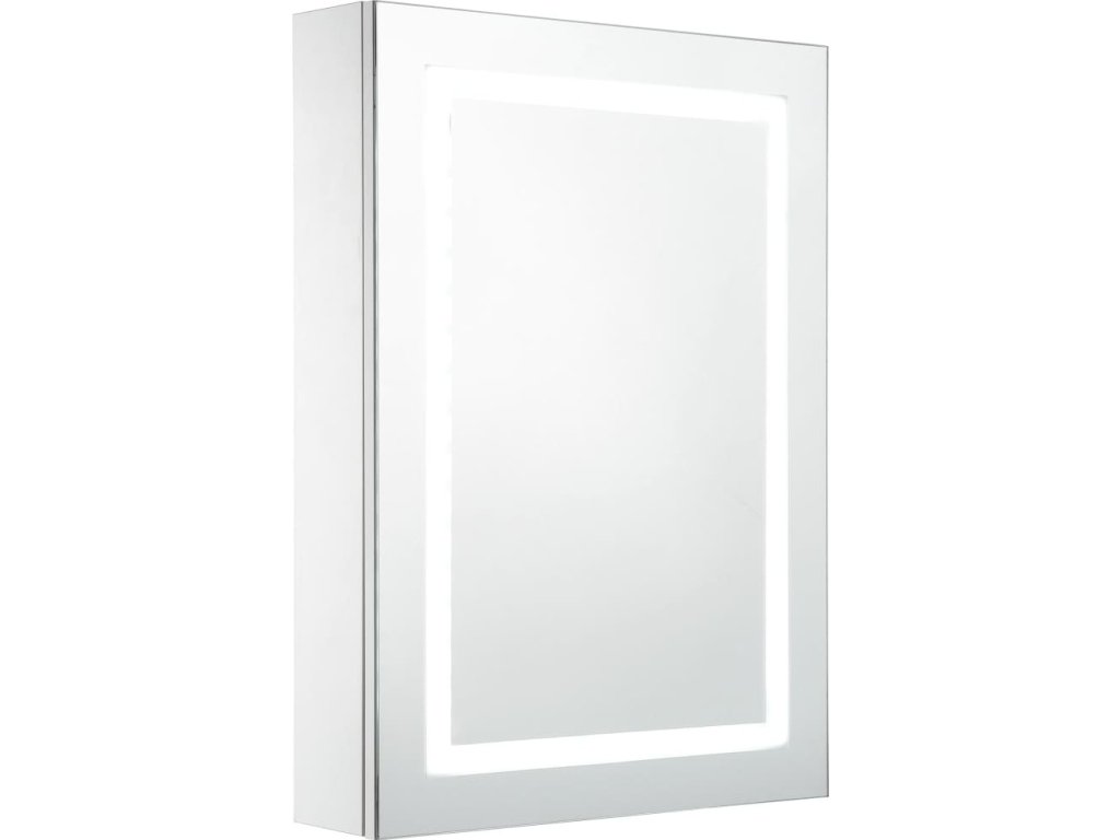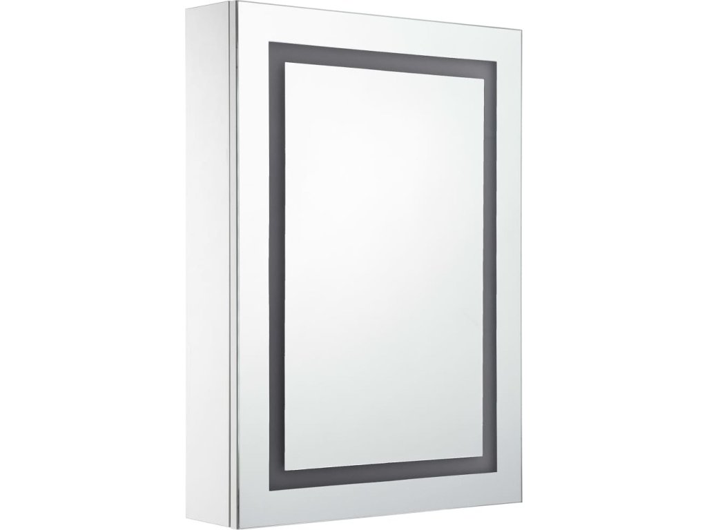 Je vyrobená z kvalitní MDF desky s melaminovou povrchovou úpravou, která zaručuje dlouholetou životnost. Energeticky úsporný LED pásek vám poskytnou optimální osvětlení pro líčení, holení či péči o pokožku. Dokonale rozzáří celou místnost, vaši tvář i váš úsměv. Uvnitř skříňky najdete 3 poličky s dodatečným úložným prostorem pro všechny vaše toaletní a kosmetické doplňky. Světlo můžete snadno zapnout či vypnout tlačítkem ve spodní části. Tato stylová a funkční skříňka ozvláštní vskutku jedinečným způsobem vybavení vaší koupelny!