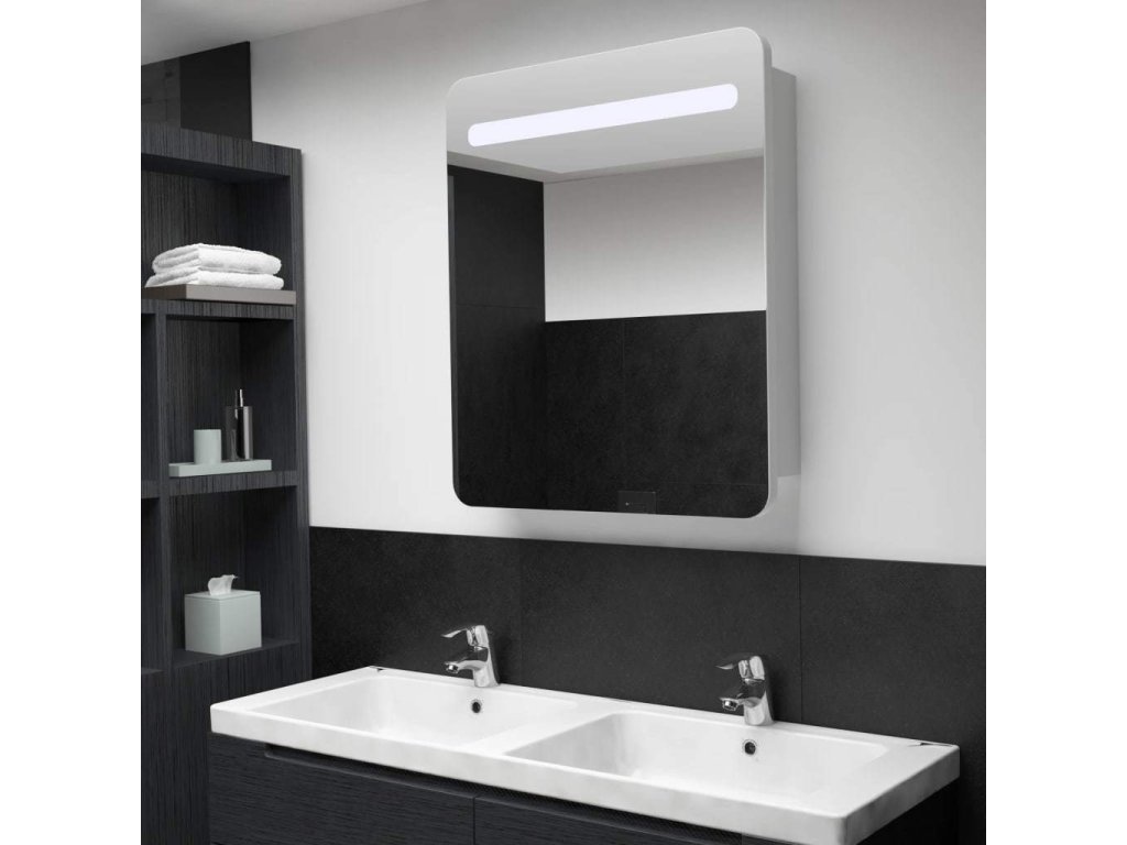 Je vyrobená z kvalitní MDF desky s melaminovou povrchovou úpravou, která zaručuje dlouholetou životnost. Integrovaná LED trubka v horní části vám poskytne optimální osvětlení pro líčení, holení či péči o pokožku. Dokonale rozzáří celou místnost, vaši tvář i váš úsměv. Ve skříňce za dvoukřídlými dvířky najdete dostatek úložného prostoru. Zde si můžete uspořádat své nezbytné toaletní potřeby, jako jsou mýdla, šampony, zubní pasty atd. Tato stylová a funkční skříňka ozvláštní vskutku jedinečným způsobem vybavení vaší koupelny!