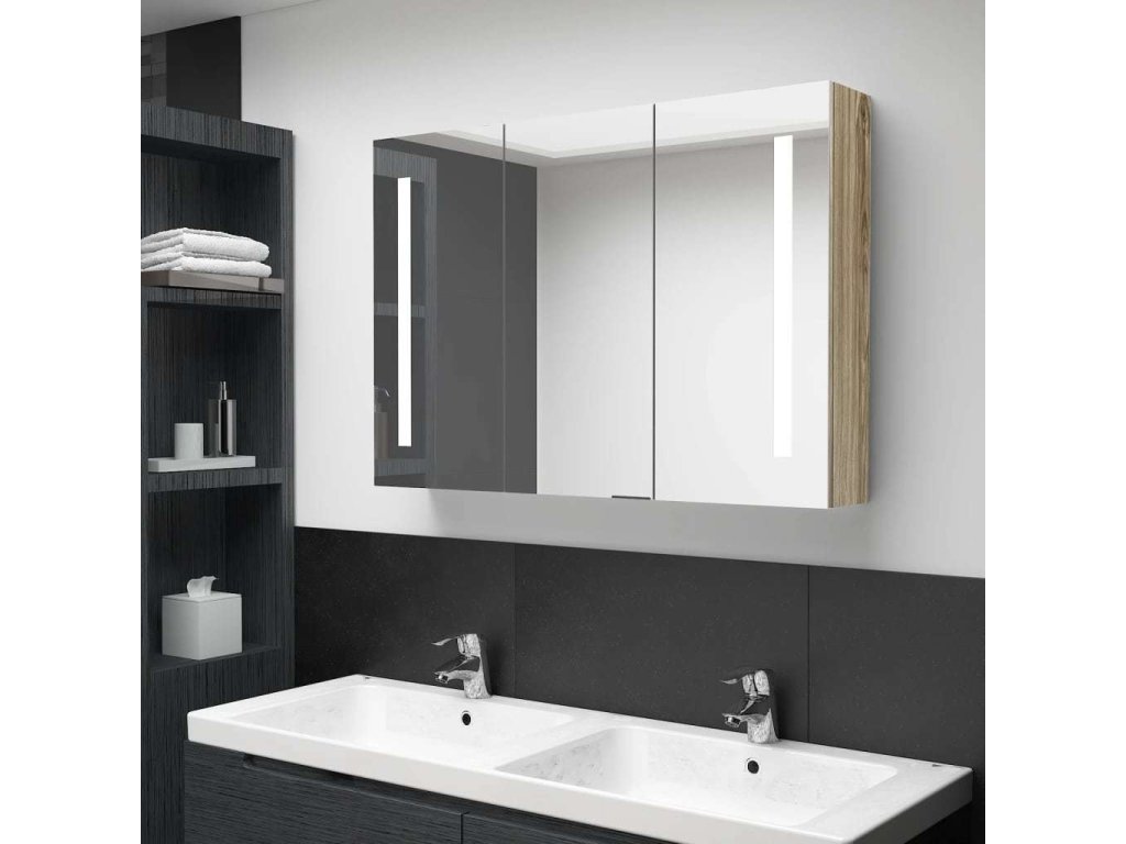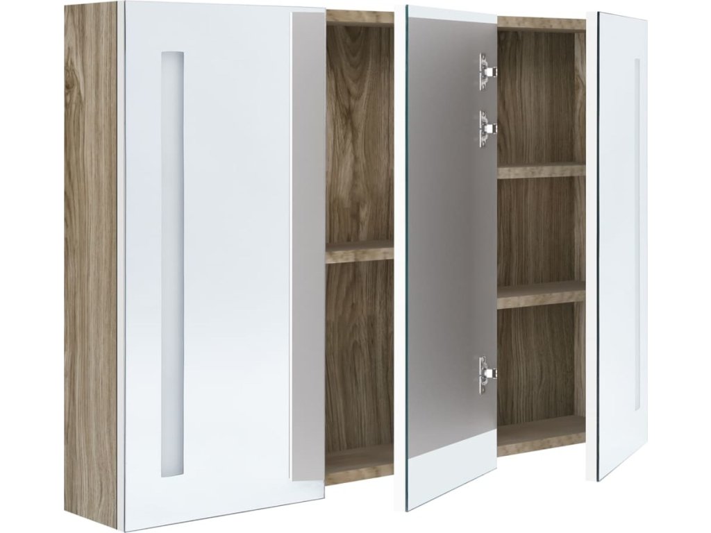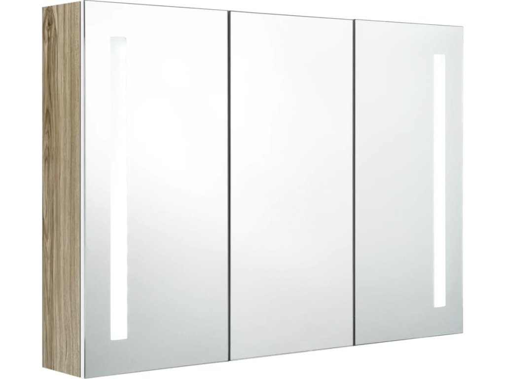 Je vyrobená z kvalitní MDF desky s melaminovou povrchovou úpravou, která zaručuje dlouholetou životnost. Energeticky úsporné LED pásky vám poskytnou optimální osvětlení pro líčení, holení či péči o pokožku. Dokonale rozzáří celou místnost, vaši tvář i váš úsměv. Uvnitř skříňky najdete 3 poličky s dodatečným úložným prostorem pro všechny vaše toaletní a kosmetické doplňky. Světlo můžete snadno zapnout či vypnout tlačítkem ve spodní části. Tato stylová a funkční skříňka ozvláštní vskutku jedinečným způsobem vybavení vaší koupelny!