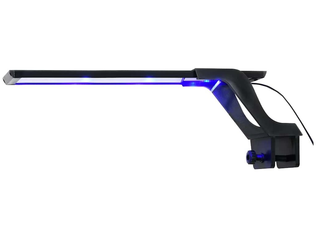 Super jasné a energeticky úsporné LED diody se dvěma režimy osvětlení dávají vyniknout barvě ryb a poskytují efekt slunečního osvětlení ve dne v noci. Nastavitelná konzola a svorka jsou určené k nasazení na akvárium o velikosti 35 až 55 cm a na stěnu nádrže ne vyšší než 25 mm. Vysoce kvalitní hliníkový plášť zajišťuje vynikající rozptýlení tepla. Tato lampa je vhodná pro sladkou i slanou vodu.