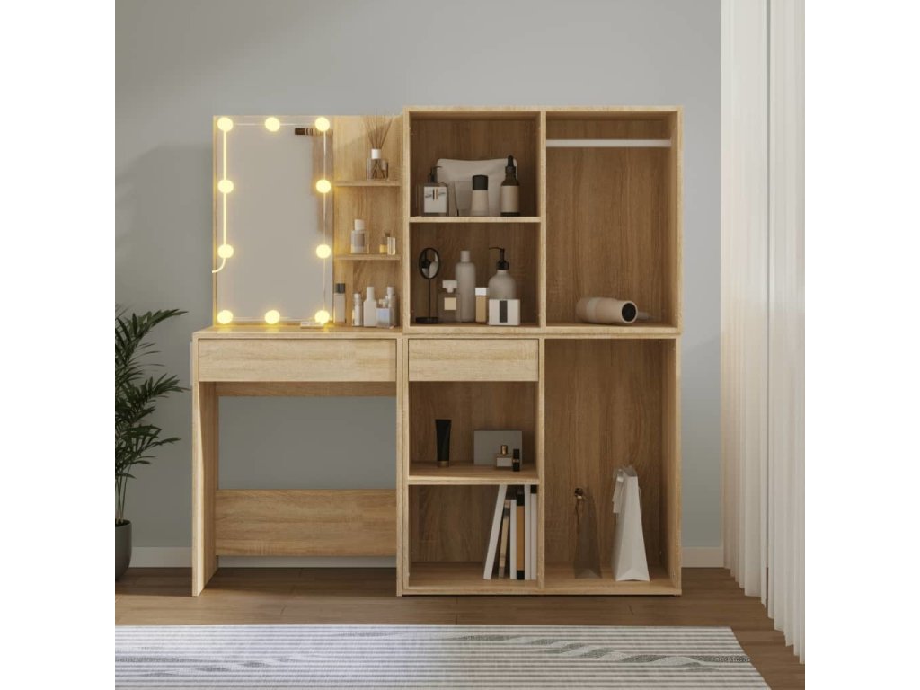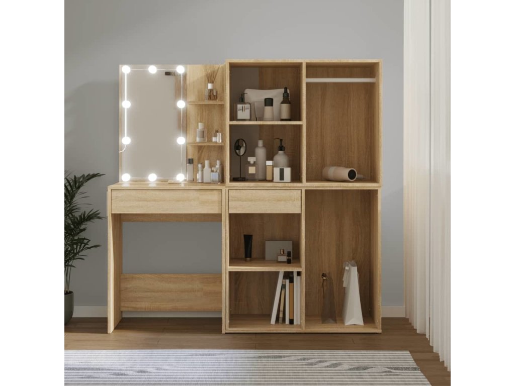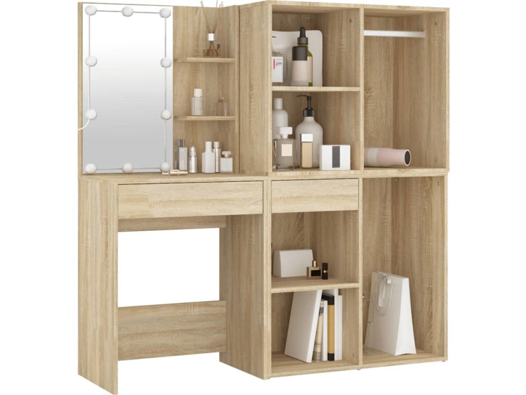 LED toaletní stolek se 2 skříňkami dub sonoma kompozitní dřevo [3082029]