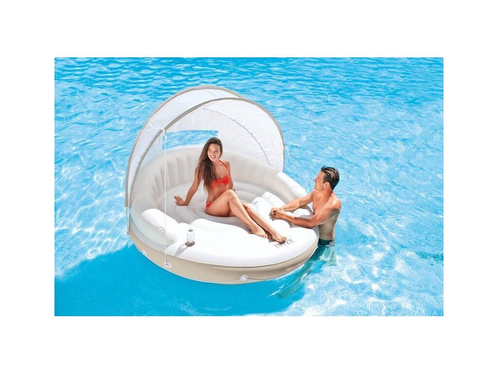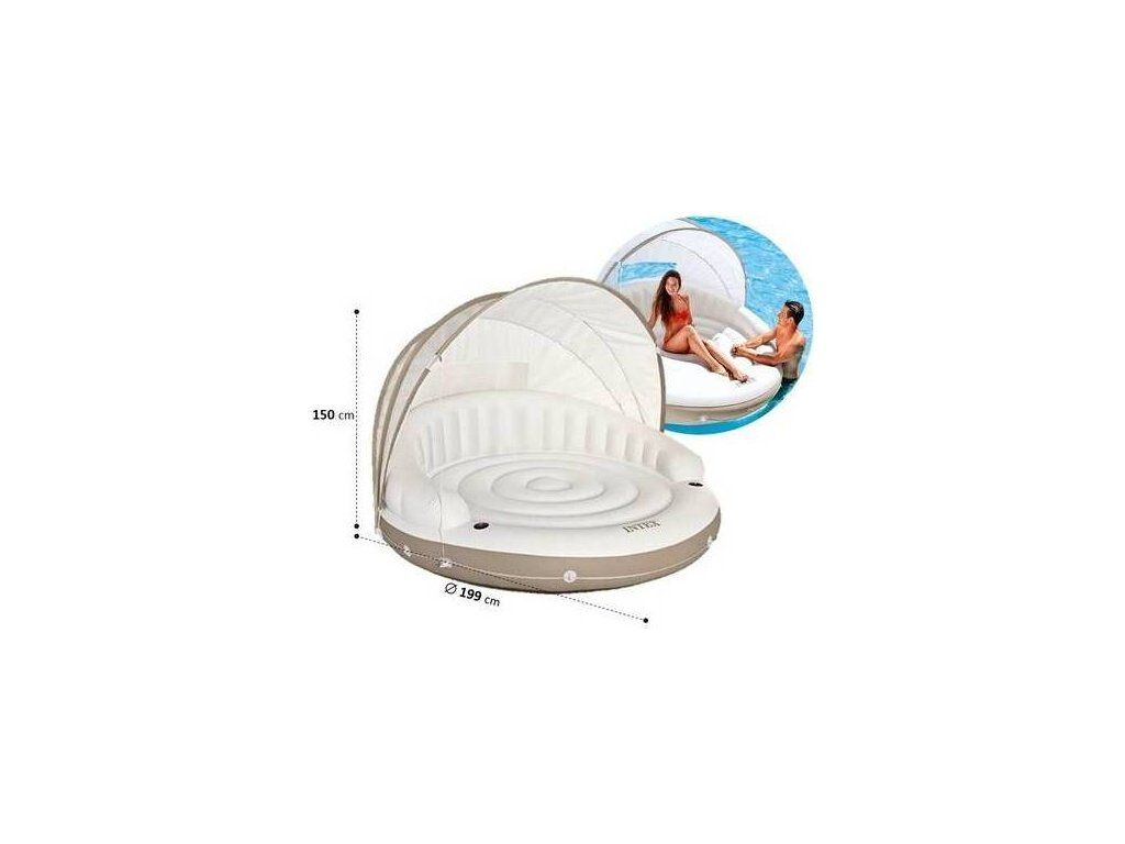 S Intex Canopy Island se budete cítit jako v pětihvězdičkovém resortu. Nastavitelná stříška vám poskytne příjemný stín pro čtení nebo odpočinek, zatímco ji můžete kdykoli zcela odejmout, pokud se rozhodnete pro slunění. Díky vysoké nosnosti 200 kg a stabilnímu kruhovému tvaru je ostrov ideální pro dlouhé hodiny relaxace. Praktické držáky zajistí, že váš oblíbený drink zůstane vždy ve svislé poloze a po ruce.