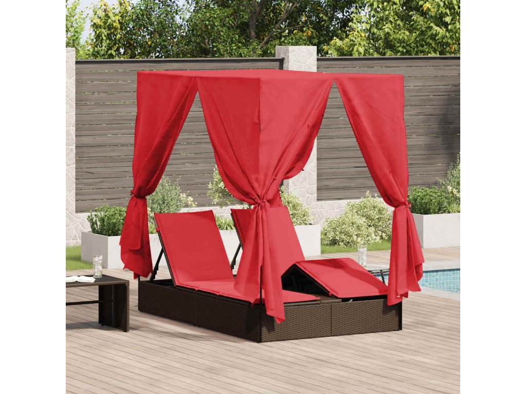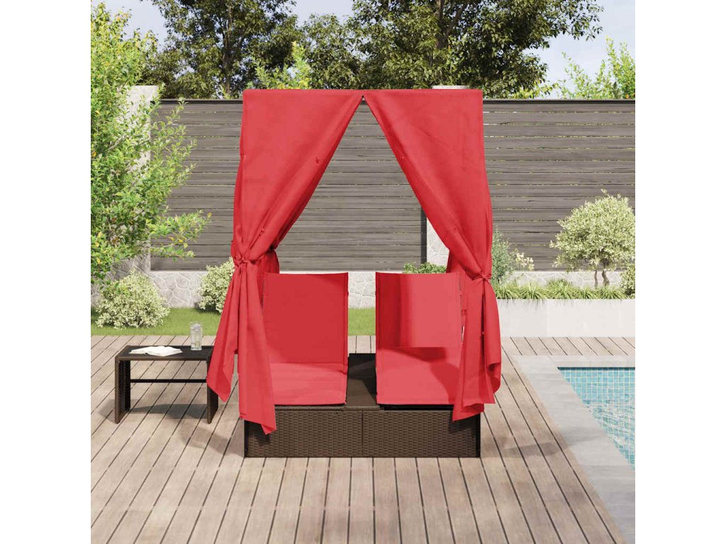 Dvojité sluneční lehátko Červená 205 x 129 x 200 cm polyratan [3376133]