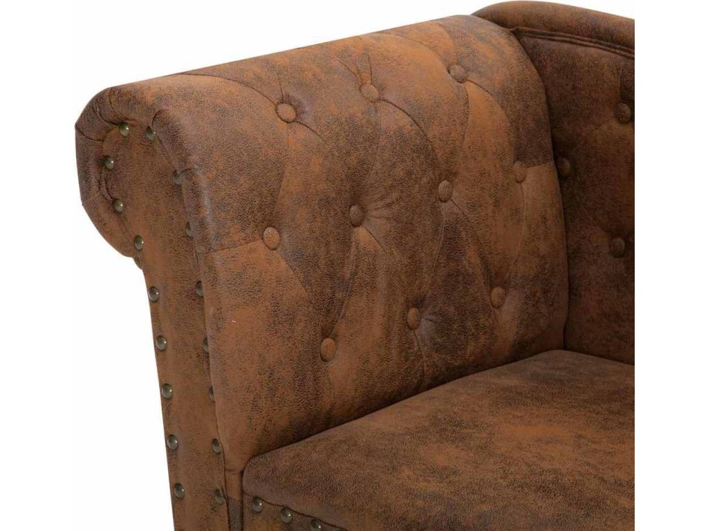 Lenoška je potažená umělou broušenou kůží a její majestátní design perfektně zapadne do vašeho bydlení. Silně polstrovaná poduška, opěrka a područka jsou vysoce komfortní, zatímco nohy z masivního dřeva přispívají k celkové stabilitě pohovky.