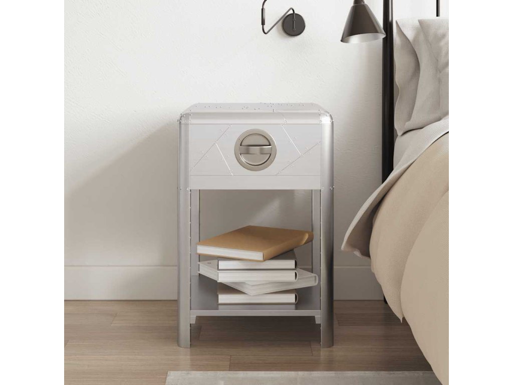 Letecký hliníkový vintage odkládací stolek s 1 zásuvkou [242115]