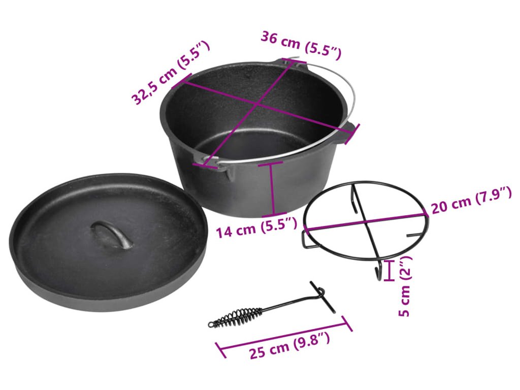Tento litinový pekáč 9QT má objem 8,8 litrů a má vnitřní průměr 29,5 cm. Je ideální model pro začátečníky i profesionály. Litinový pekáč můžete používat pro zapékání, dušení, pečení masa atd. Malý litinový pekáč je dodán s černou přenosnou taškou, věkem se zvýšeným okrajem, zvedákem na víko a podložkou. Černá přenosná taška umožňuje pekáč udržovat v čistotě během přepravy. Je vhodný pro vaření, pečení a smažení. Ideální pro kempování.