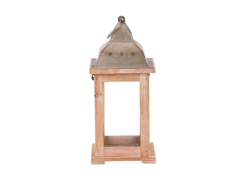 Čtyřboká lucerna s dřevěnými rámy v přírodní barvě a kovovou stříškou s kroužkem na pověšení je nádherným doplňkem pro zpříjemnění večerů. Po vložení svíčky vytvoříte neodolatelný světelný efekt, který zútulní interiér i venkovní prostory. Lucerna je ideální dekorací pro vytvoření romantického osvětlení pro slavnostní i všední chvilky.