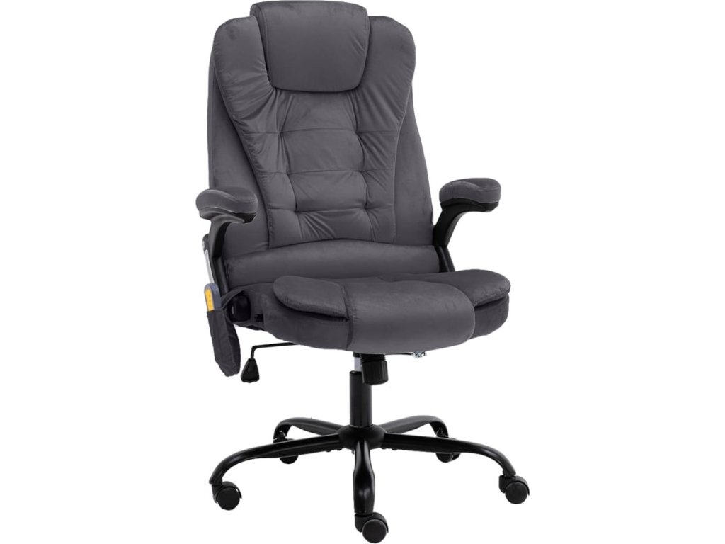 Židle má vysoké opěradlo, zaoblené područky a hustě polstrovaný sedák, aby se vám na ní dobře sedělo i během dlouhých pracovních dnů. Její výšku lze nastavit, takže ji bez problémů přizpůsobíte výšce psacího stolu, a dosáhnete tak maximálního pohodlí i zdravé pozice páteře. Polohovací křeslo je vybavené nylonovými pojezdovými kolečky pro snadný pohyb. Židle k počítači má 4 masážní body na záda a 2 masážní body na hýždě. Disponuje také funkcí vyhřívání pasu.