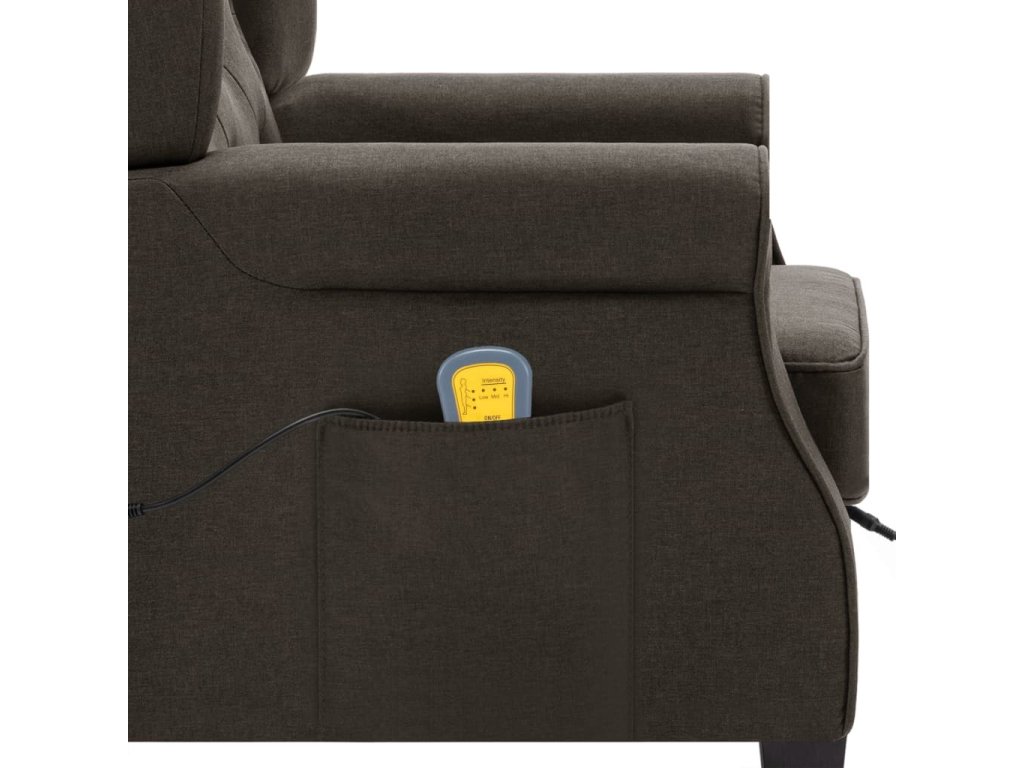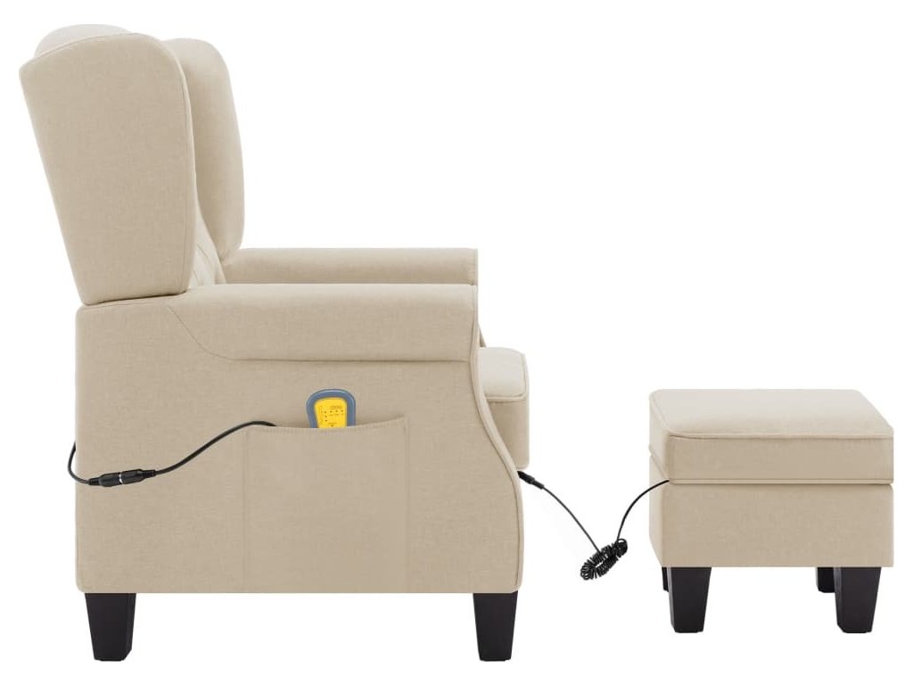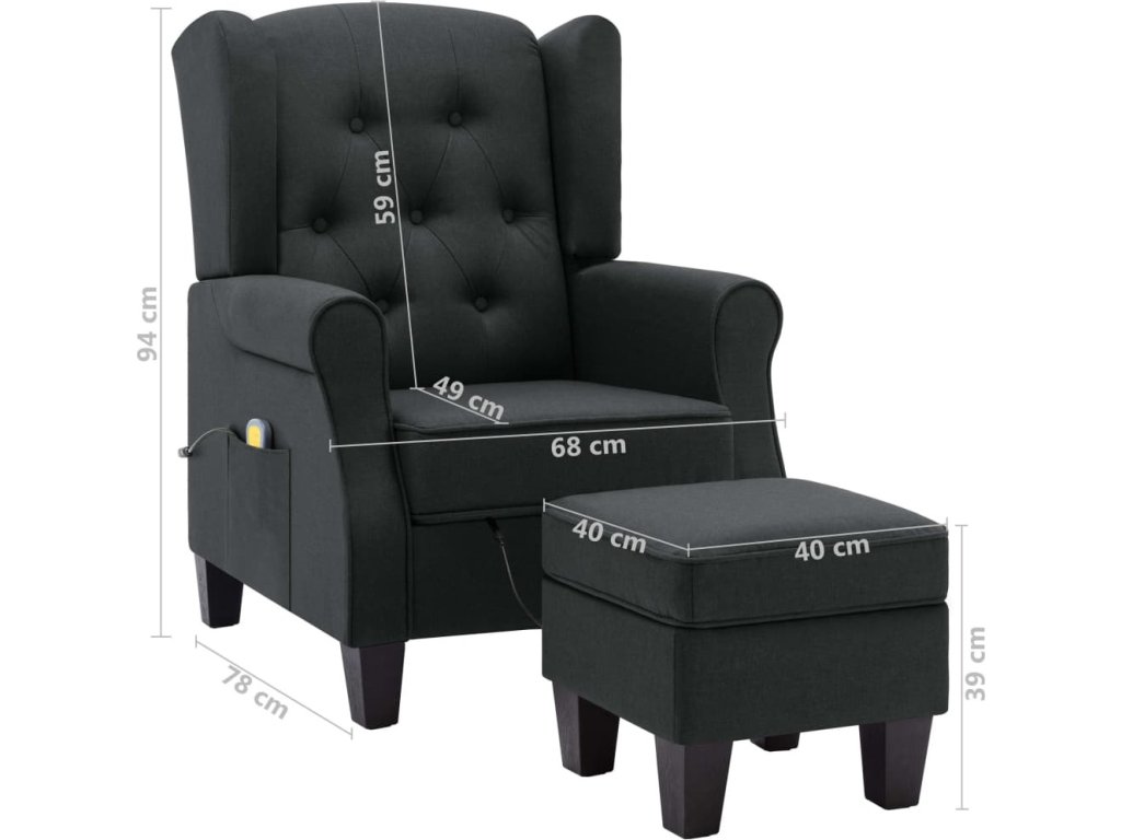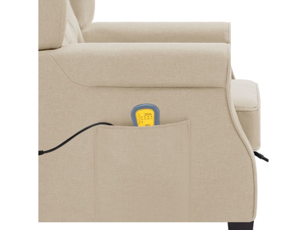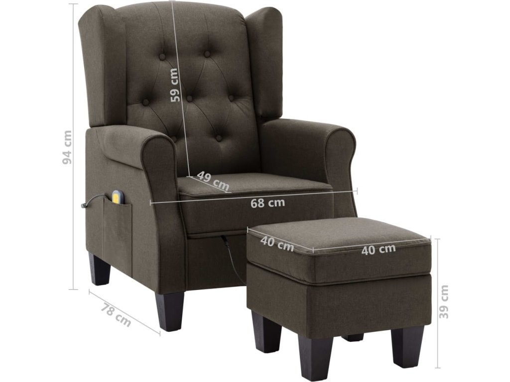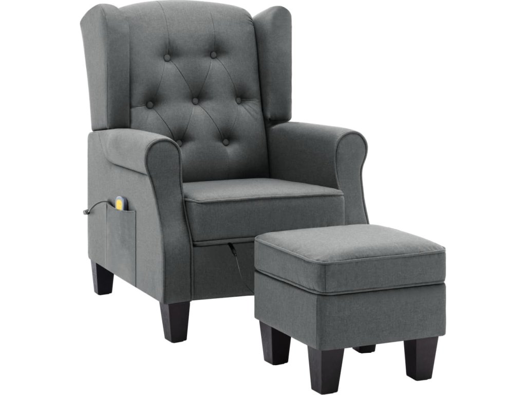Elektrické masážní křeslo je vyrobené z látky a vycpané pěnovým molitanem, je tedy velice odolné a přitom vám zajistí příjemné posezení. Dřevěné nohy zaručují mimořádnou stabilitu nábytku. Ušák má vysoké opěradlo a hluboké podušky pro maximální pohodlí. Disponuje 4 masážními uzly pro záda a hýždě, zatímco 2 další masážní uzly pro nohy se nachází na podnožce. Přiložený dálkový ovladač umožňuje volit mezi různými masážními programy. Masážní TV křeslo je na jedné straně opatřené boční kapsou, kam můžete dálkové ovládání uschovat.