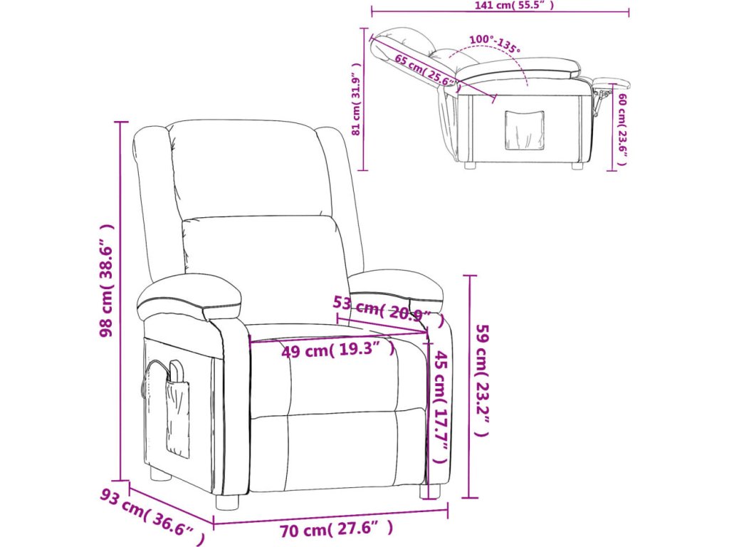 - Rozměry sklopeného křesla: 70 x 141 x 81 cm (Š x H x V)