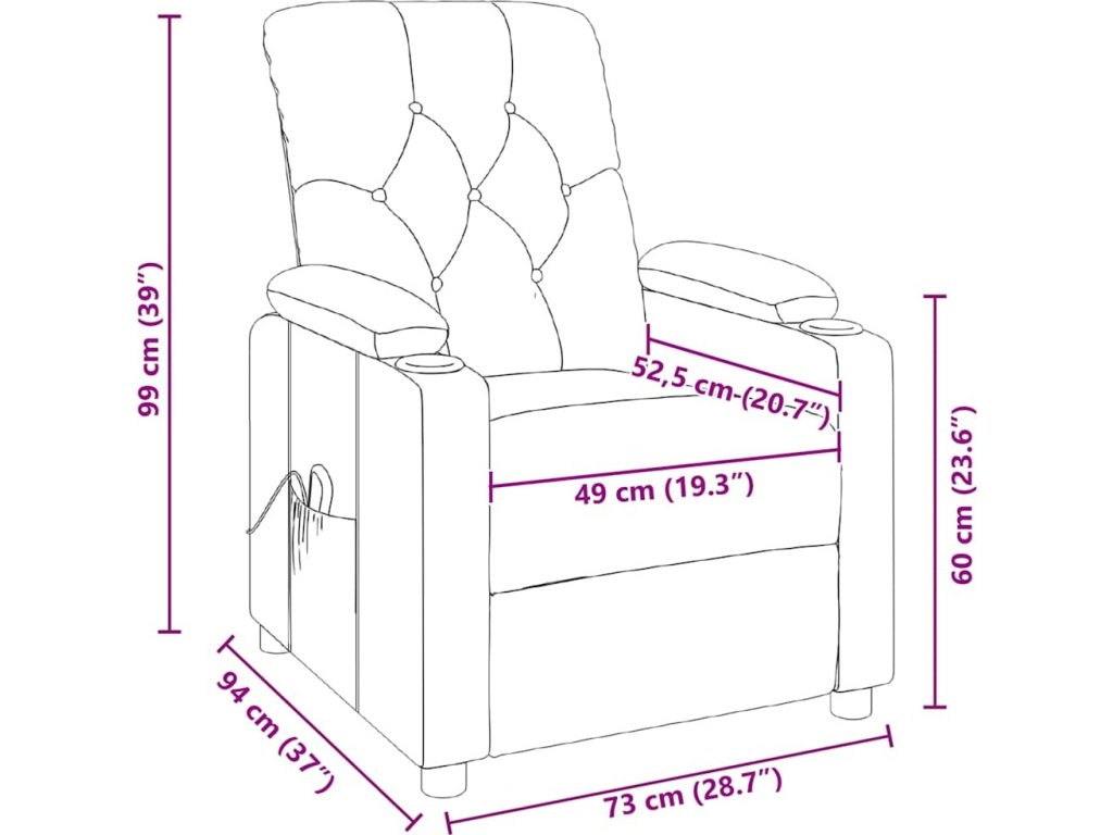 - Výška područky od země: 59,5 cm