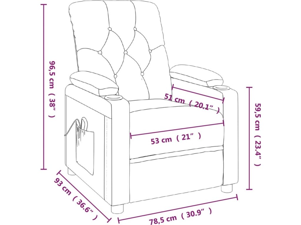 - Rozměry sklopeného křesla: 78,5 x 136,5 x 80,5 cm (Š x H x V)